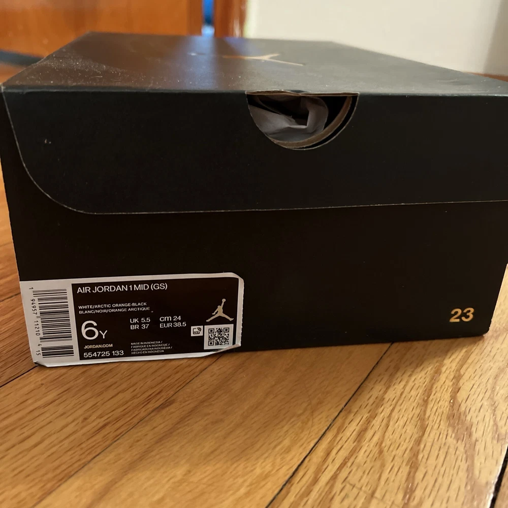 Brand- new Air Jordan 1 Mid (GS) White/Arctic Orange- Black Size 6Y (7.5 in women’s) / 5.5 UK Never worn before, in perfect condition.