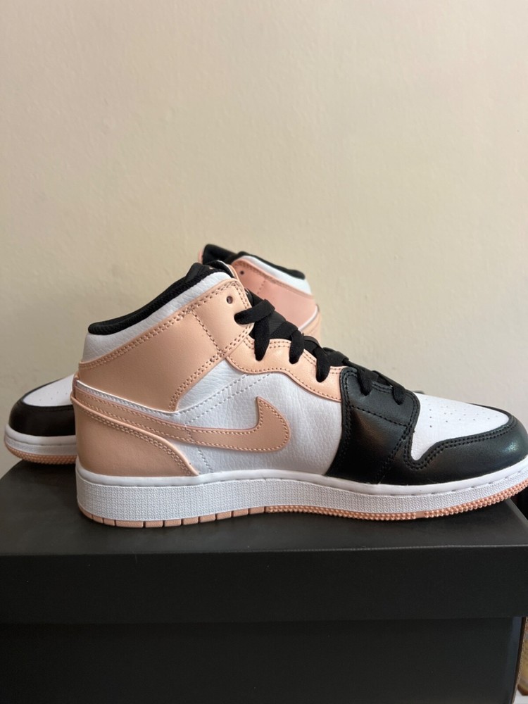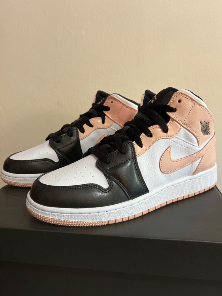 Elevate your sneaker game with these stylish and trendy Jordan Air 1 Mid GS sneakers. Featuring a mid-top silhouette, these sneakers are perfect for any casual or athletic occasion. The shoe is made with a multicolor design, including white, black, and crimson tint, making it a standout addition to any outfit.These sneakers are available in UK shoe size 6 and US shoe size 7 Y. The style code is 554725133, and the model is Jordan Air 1 Mid GS. These sneakers are not customized and are part of the Air Jordan product line. Add these sneakers to your collection today!