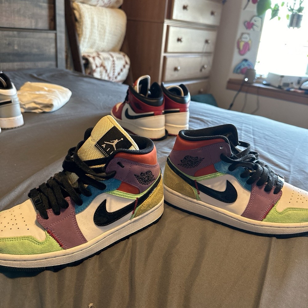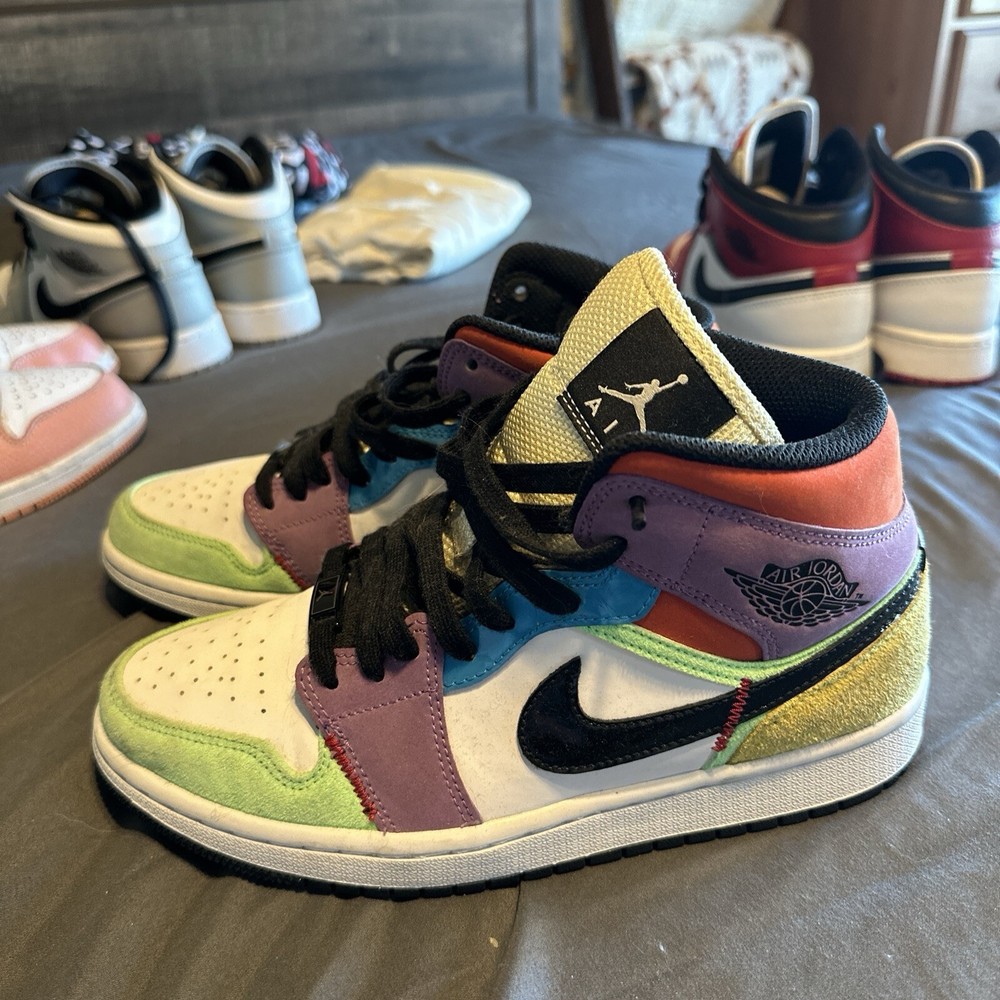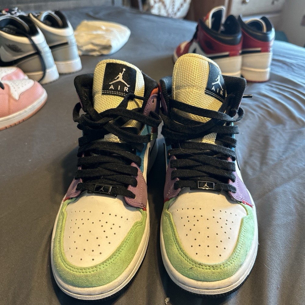 Elevate your footwear game with the Air Jordan 1 SE Mid Lightbulb in a versatile size 8. These sneakers feature a striking color palette of White/Black/Lightbulb/Team Orange, creating a standout look that's sure to turn heads. The mid-top design offers a classic silhouette, while the leather upper ensures durability and a premium feel. The Air Jordan 1 continues to be a beloved staple in the sneaker world, and this 2020 release is no exception. With its comfortable athletic fit and iconic styling, this pair is perfect for those who appreciate the blend of fashion and function. The style code CW1140-100 confirms its authenticity as a standout piece from the Air Jordan product line.