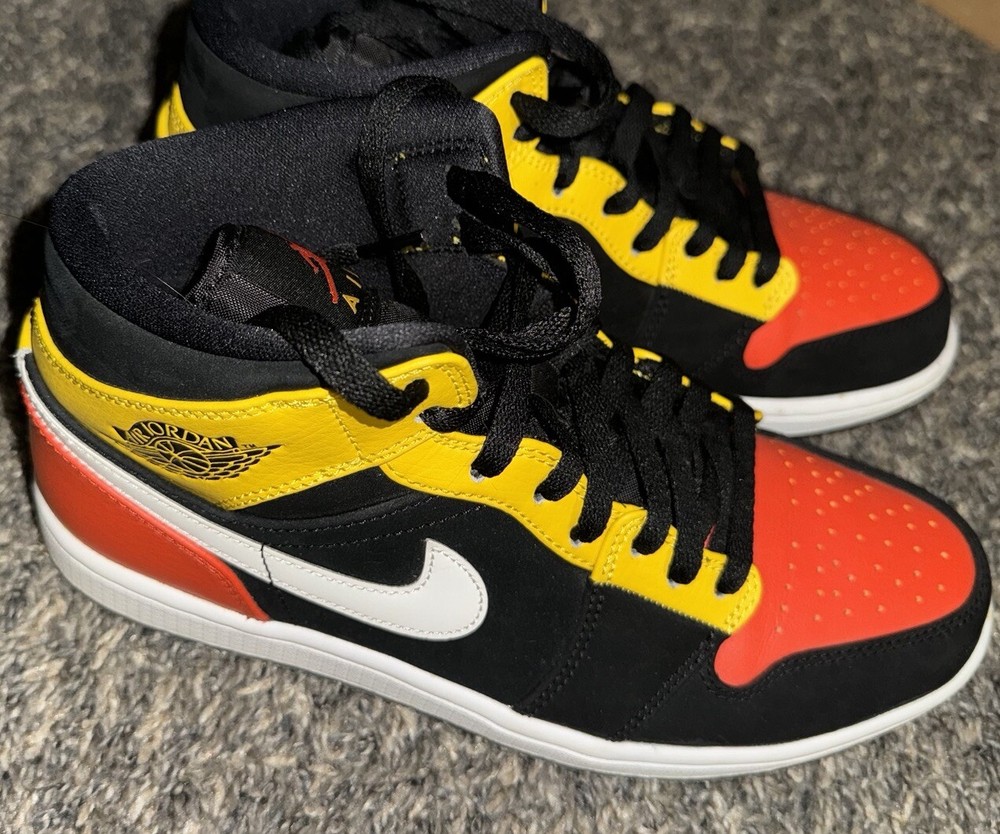 Experience the iconic Air Jordan 1 Mid SE Amarillo in a size 8. This sneaker boasts a stylish black and Amarillo colorway, perfect for any athletic occasion.