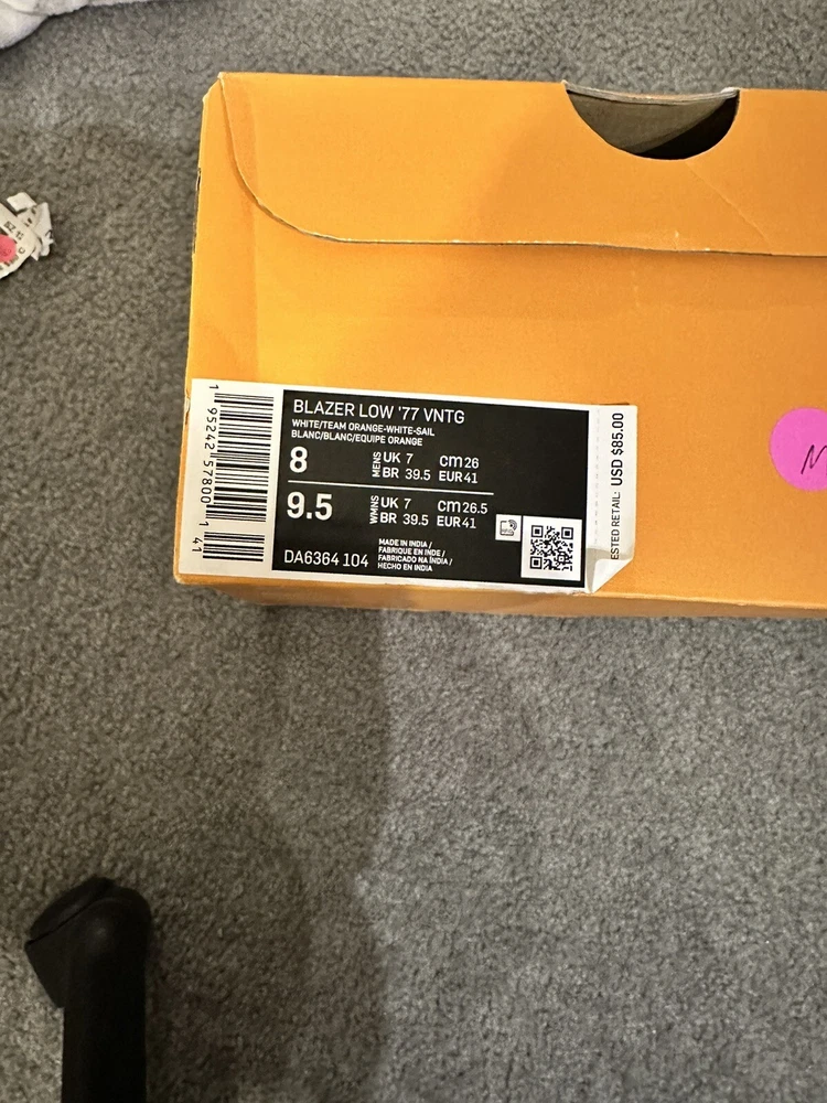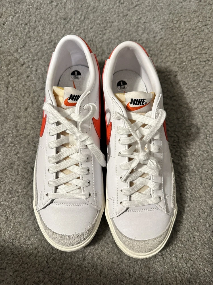 Size 8 - Nike Blazer Low 77 Vintage White Team Orange