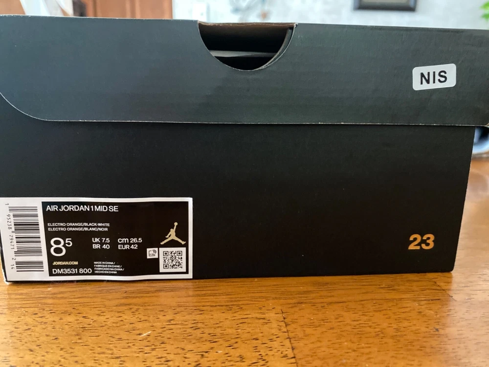 Size 8.5 - Jordan 1 Mid SE Electro Orange 2021. The previous owner, my son, grew out of these in a matter of months and went from a size 8.5 to an 11. Rarely worn. Crease guards included. Like new....