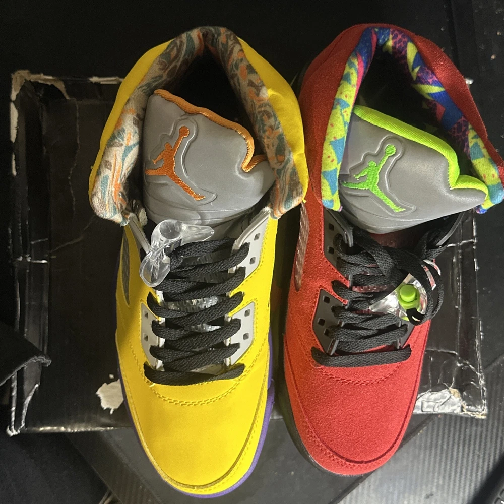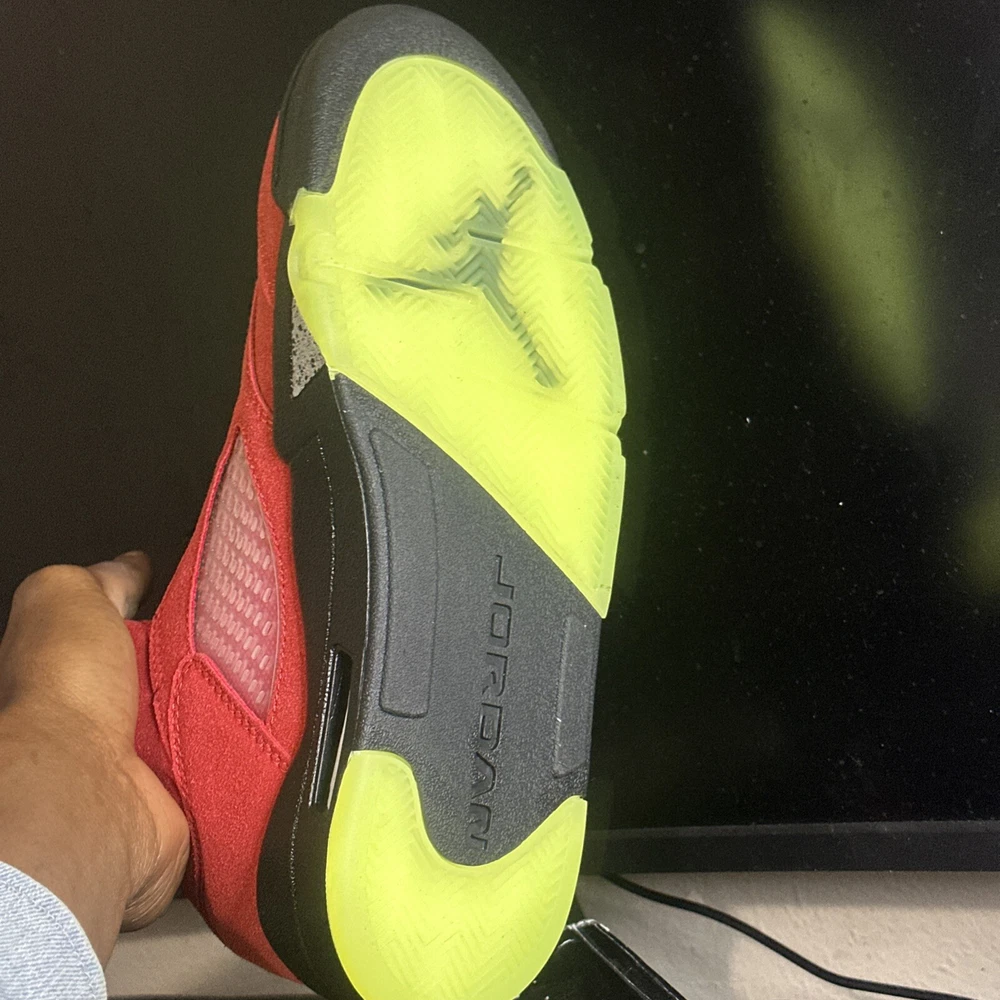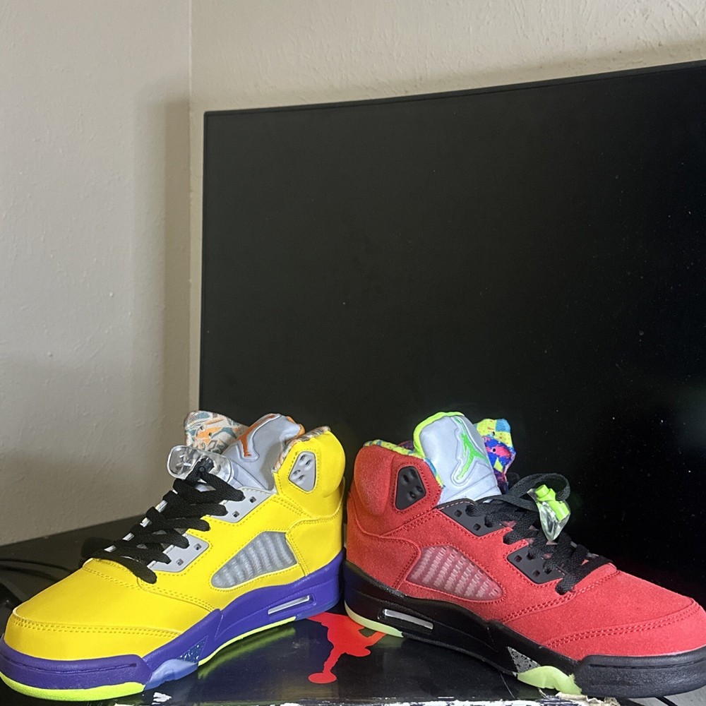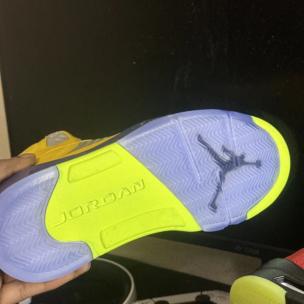 Elevate your sneaker game with these stylish and vibrant Air Jordan 5 Retro SE Solar Orange sneakers. The mid-top design, silhouette, and bold yellow color make them a standout addition to any wardrobe. The shoes are made with premium suede material and feature a unique style code of CZ5725-700. These sneakers are perfect for any athletic occasion and are sure to turn heads with their eye-catching design. The Air Jordan 5 Retro SE Solar Orange sneakers are available in a men's US shoe size 8.5 and are part of the iconic Air Jordan product line. Don't miss out on adding these sneakers to your collection!