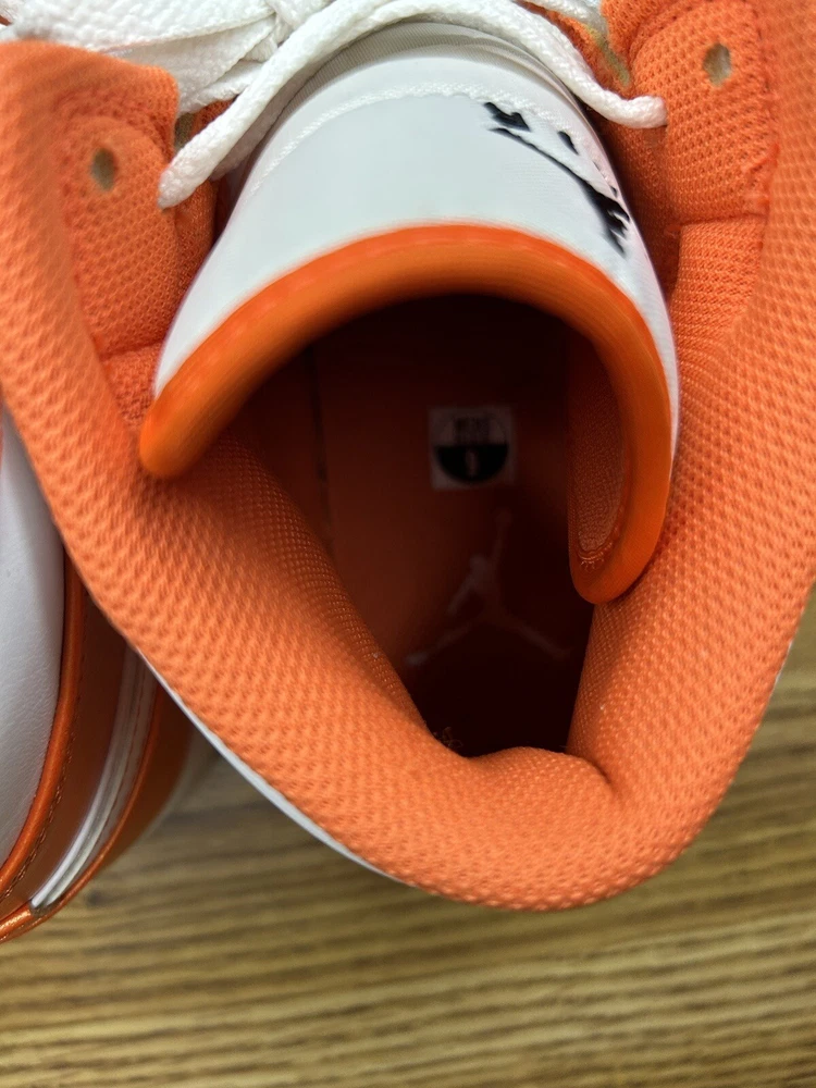 These Jordan 1 Mid SE Electro Orange sneakers are in amazing condition—only worn once! They come with the original laces and fit true to size 9. The seller is super flexible with shipping options, offering a Nike box or no box, and even willing to share videos for extra peace of mind. Perfect for anyone looking for a fresh pair of Js without the retail price!