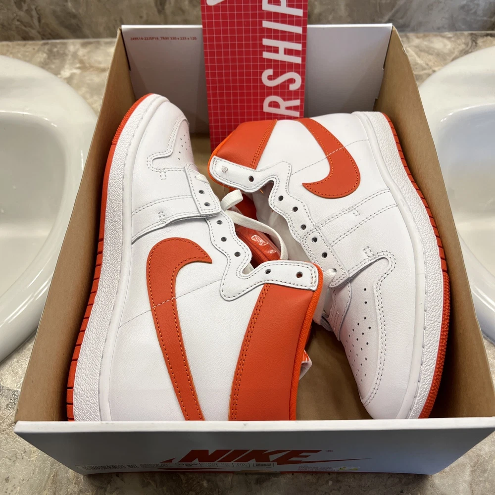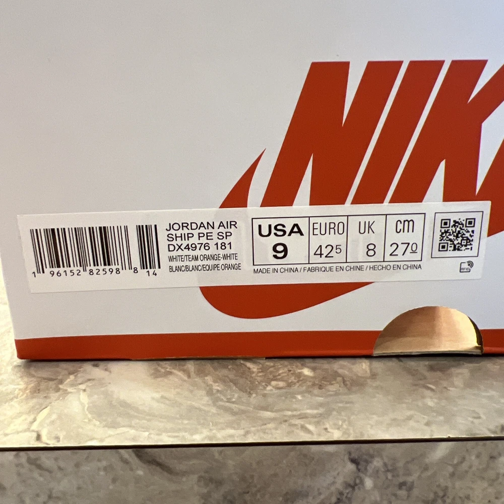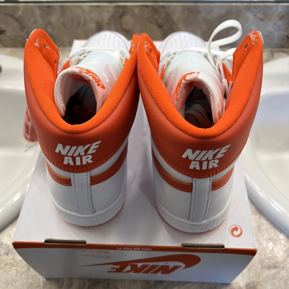 Elevate your sneaker game with these Nike Air Ship sneakers in white and team orange. The mid-top shoe shaft style provides a comfortable fit, while the DX4976-181 style code ensures you're wearing the latest in athletic footwear. These sneakers are perfect for men who love to stay active and want to look good doing it. The white and team orange color combination is eye-catching and stylish, making these sneakers a great addition to any wardrobe. With a release date of 20221012, these Nike Air Ship sneakers are perfect for anyone looking for a high-quality athletic shoe. Get yours today and take your workout to the next level. Upper box sleeve is missing. Please see pictures!