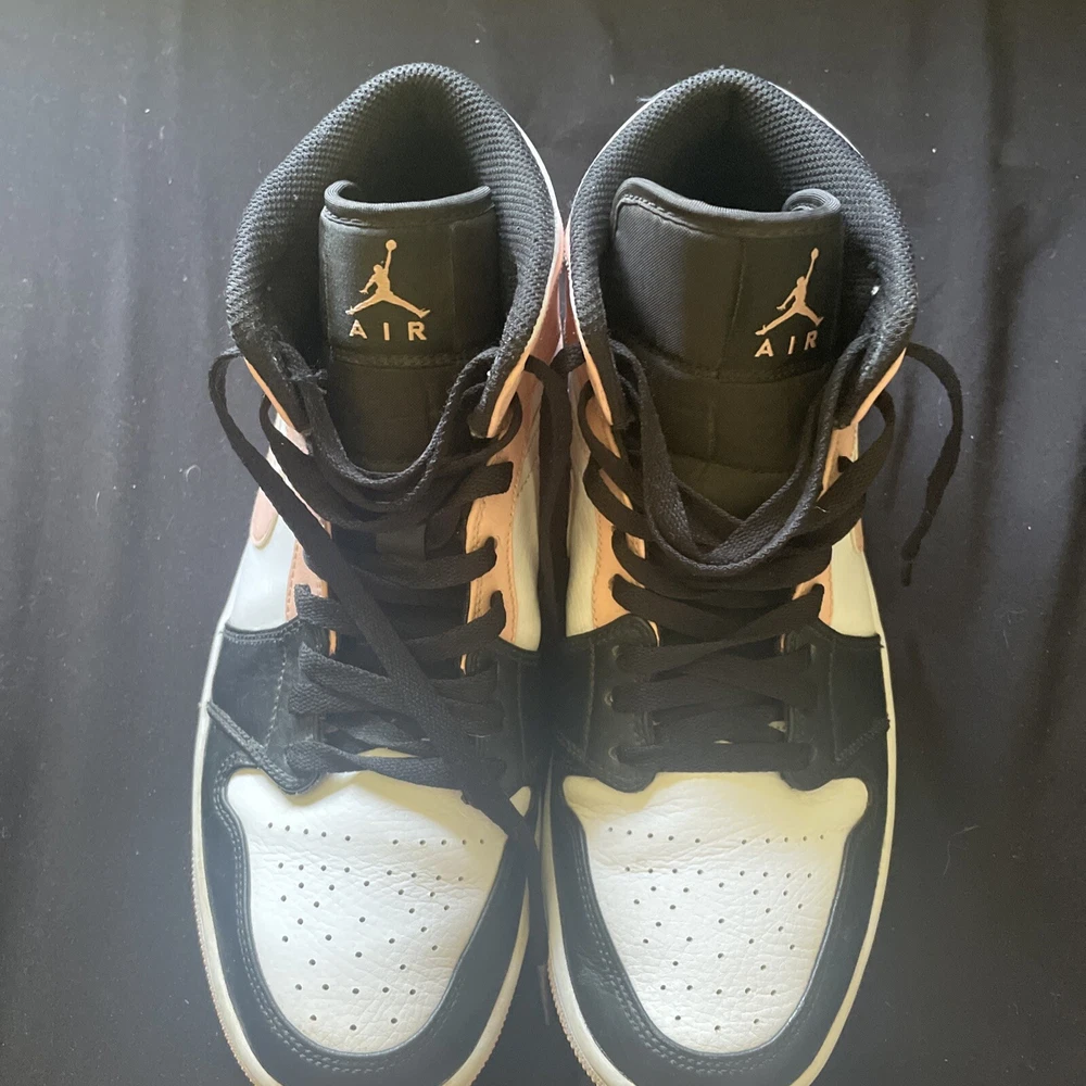 These Air Jordan 1 Mid Crimson Tints are in amazing condition—barely worn, just a few uses! The crease protectors are a nice bonus, keeping them fresh. No box, but that’s no big deal since the shoes look nearly new. Super comfortable and stylish, perfect for sneakerheads who want a clean pair without paying full price. Love the colorway—goes with everything!
