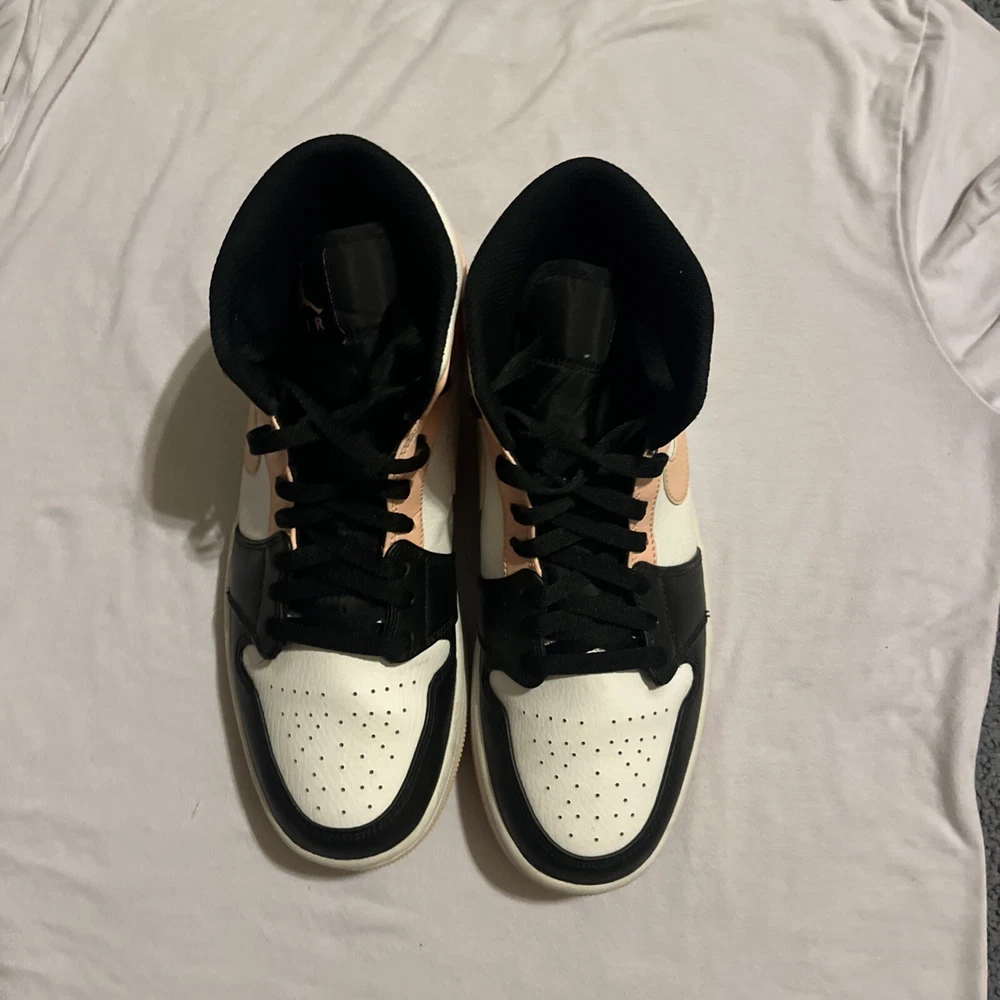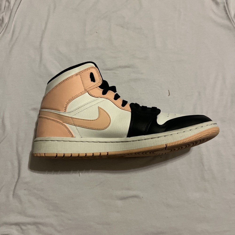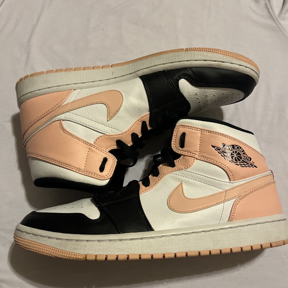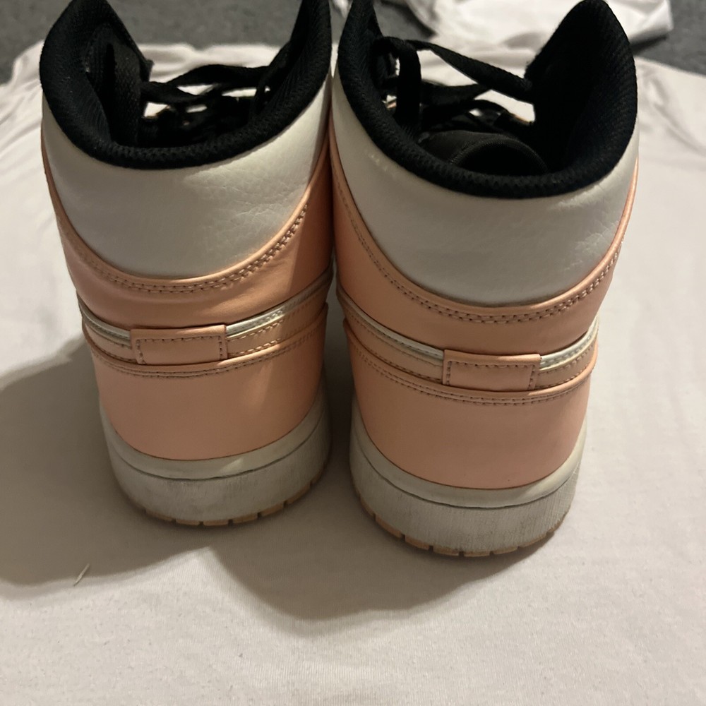 Elevate your sneaker game with these stylish Air Jordan 1 Mid Crimson Tint sneakers. Crafted with a white leather upper material, these sneakers feature a mid-top shoe shaft style and a striking orange and black colorway. The sneakers are part of the iconic Air Jordan product line and boast a style code of 554724-133. These sneakers are perfect for any athletic occasion and are sure to turn heads with their unique design. The size 9.5 sneakers are designed for men and are manufactured by Jordan. Don't miss out on the chance to add these Crimson Tint sneakers to your collection. These Jordan’s are lightly used, little to no creases, some stars missing.