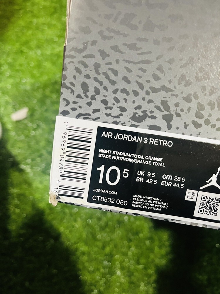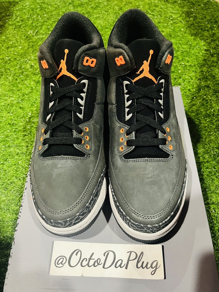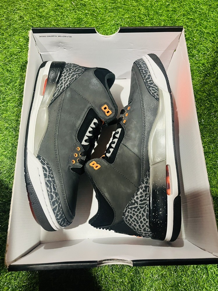 Step up your sneaker game with these stylish Air Jordan 3 Retro 2023 Mid Fear Grey Orange (CT8532-080) sneakers. Designed with a mid-top shoe shaft style, these athletic shoes are perfect for men who want to stay comfortable and fashionable at the same time. The gray color and retro theme will make you stand out from the crowd, and the 9.5 UK and US shoe sizes ensure a perfect fit. Crafted with top-quality materials, these Jordan sneakers are built to last. The Air Jordan 3 model is a classic, and this 2023 release is sure to impress. Whether you're hitting the gym or just running errands, these sneakers will keep you looking and feeling great. Don't miss out on the opportunity to add these stylish shoes to your collection.