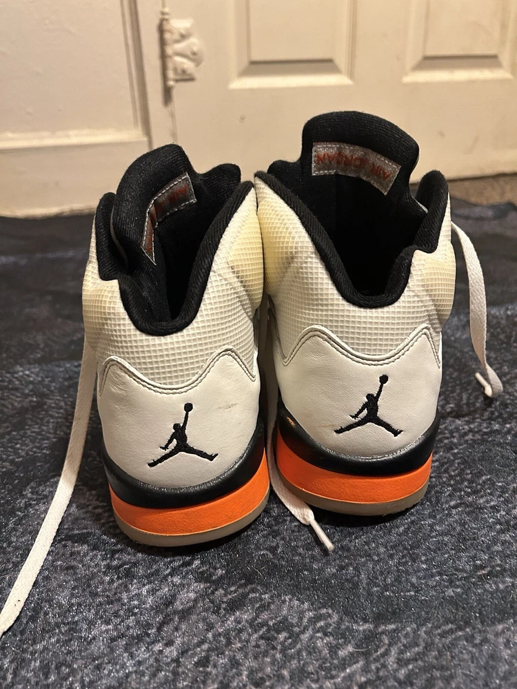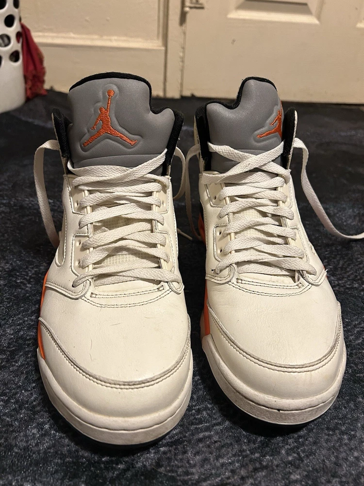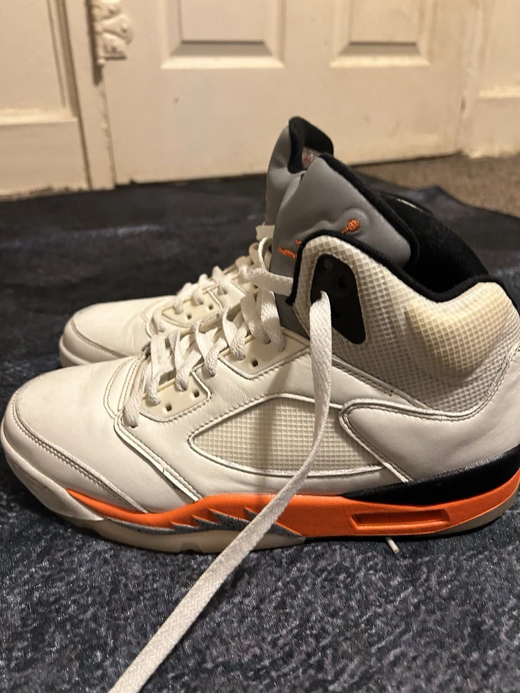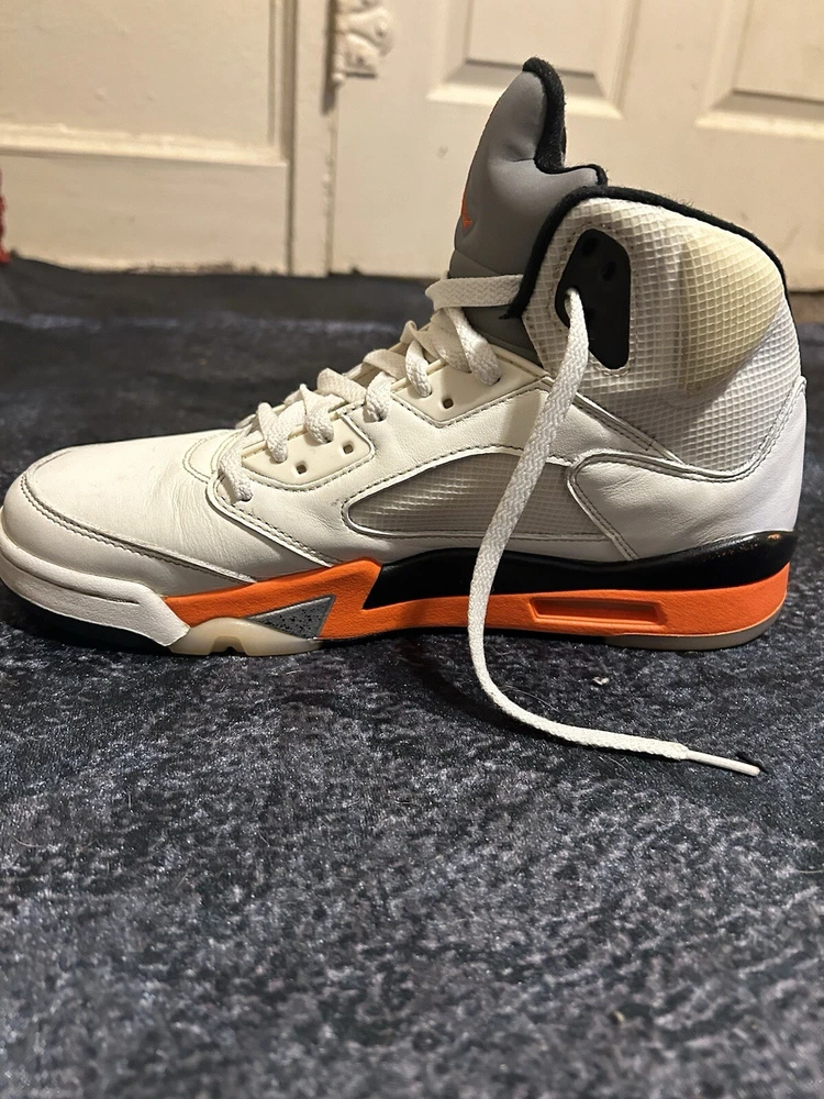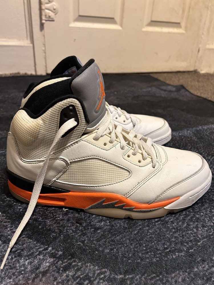Elevate your sneaker game with these stylish and iconic Air Jordan 5 Shattered Backboard sneakers. Featuring a mid-top shoe shaft style, these sneakers come in a white and multi-color total orange manufacturer color scheme. The style code DC1060-100 and model name Air Jordan 5 make these sneakers a must-have for any sneakerhead. These athletic sneakers are perfect for men who want to make a statement with their footwear. The release date of 20210925 and size 9.5 make these sneakers a great addition to any wardrobe. Don't miss out on the chance to own a piece of history with these Air Jordan 5 Shattered Backboard sneakers.