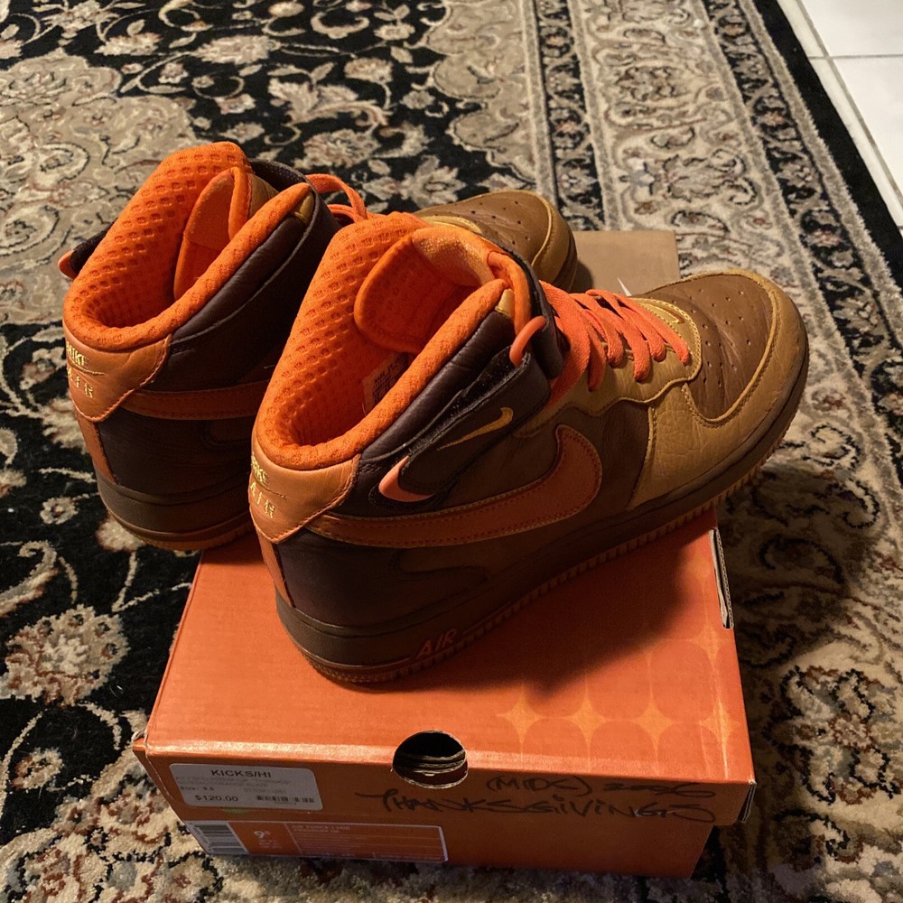 Size 9.5 - Nike Air Force 1 Mid Premium QK Thanksgiving. SEE MY OTHER LISTINGS! SELLING OFF VINTAGE COLLECTION!!! Please read; by bidding you agree to these terms: I’m a 20 year collector selling all my shoes; the bulk of my collection has only been worn a handful of times and is in great condition. Smoke-free indoor stored forever. I start my listing low and in many cases these shoes are sold at a fraction of their cost. I only ship within the USA and ship USPS Priority via eBay- which automatically includes 50.00 insurance (if this isn’t sufficient please let me know prior to payment and I can add additional insurance / packaging services at your cost) and provides calculated shipping to your destination. Should any shipment get lost or delayed through the postal service after tracking is initiated, the buyer agrees not to hold the seller or eBay responsible. I offer discounted shipping but it’s at my discretion to limit them to two pairs per shipment as large boxes are limited on my end. Due to many bidders not paying on won items; any cancellation on winning bids or non response will result in being blocked from any future items in listed. Sorry; but deadbeats shouldn’t be on eBay. Good luck on all my listings. Please pay within three days on all winning bids to avoid cancellation and so I can mail these as quickly to you as possible. I reserve the right to end any item prematurely. No refunds or exchanges. Aloha!