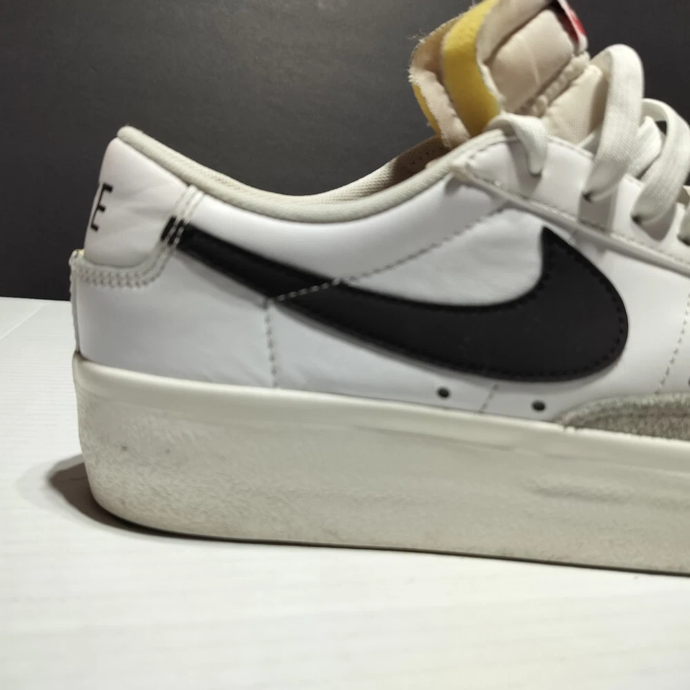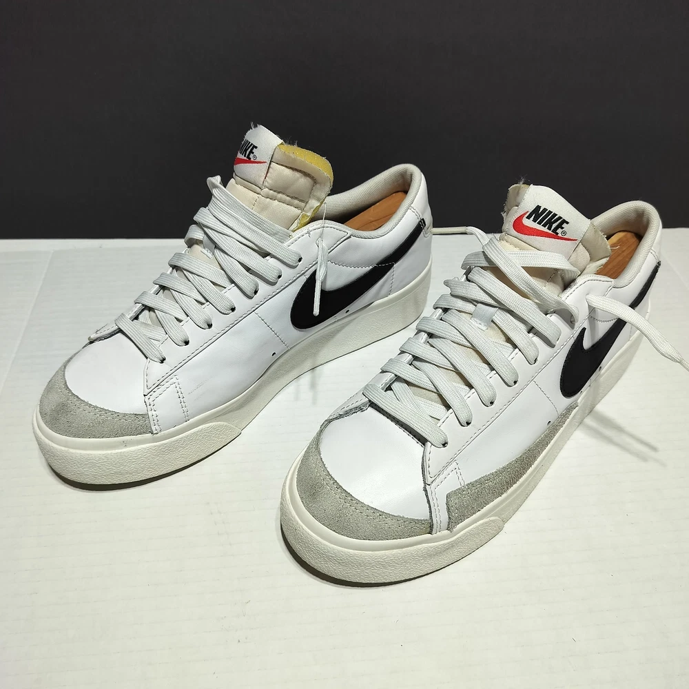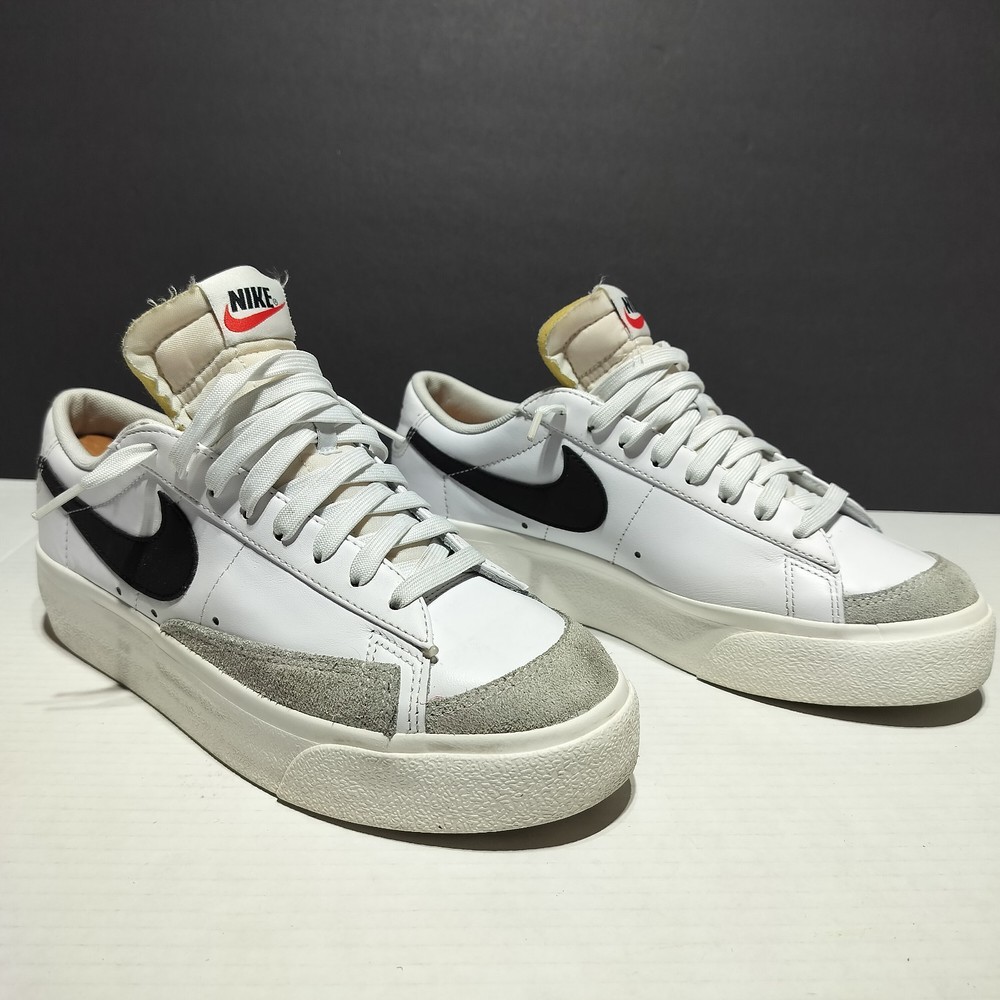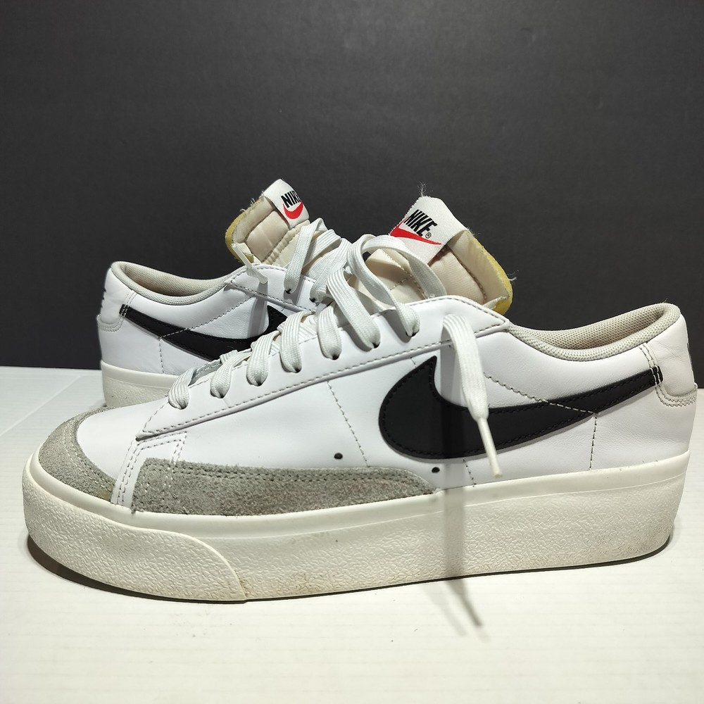 This Nike Blazer Platform Low sneaker is a must-have for women who love sports and casual wear. The shoe is a size 9.5 with a lace-up closure and a standard shoe width. It has a low-top style and is made of white leather and black fabric lining. The outsole is made of rubber and has a DJ0292-101 style code. The Nike Blazer sneaker is suitable for various occasions such as activewear, casual wear, and workwear. It is perfect for gym and training, walking, skateboarding, and running & jogging. The shoe is from the Nike Blazer product line and was released in 2021. It has been rarely used and is in flawless condition.