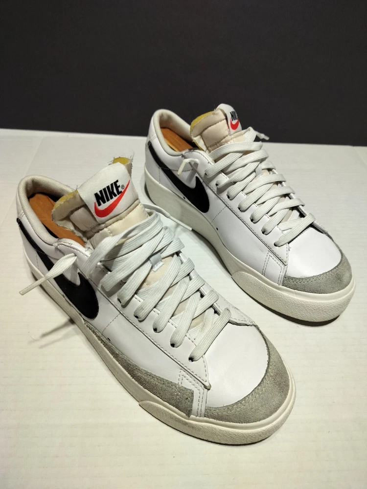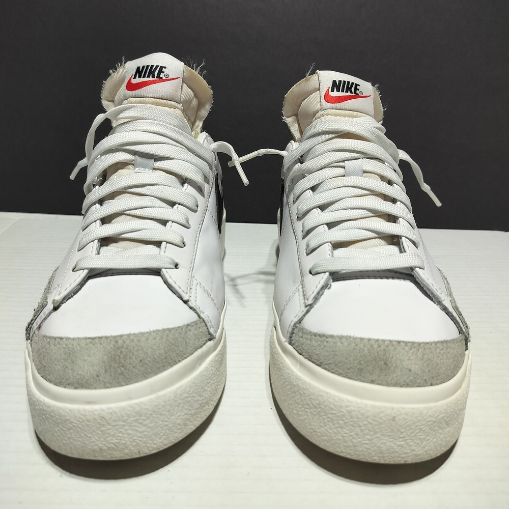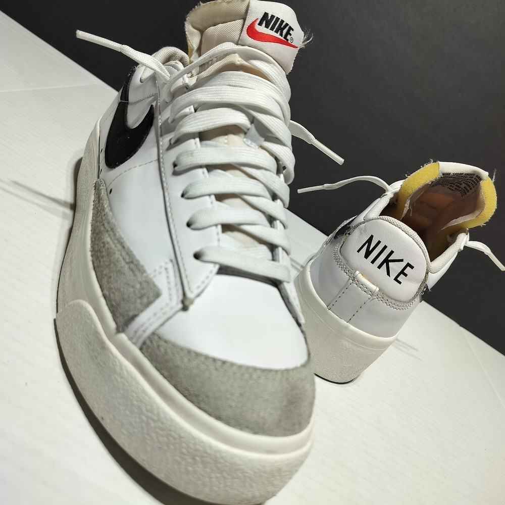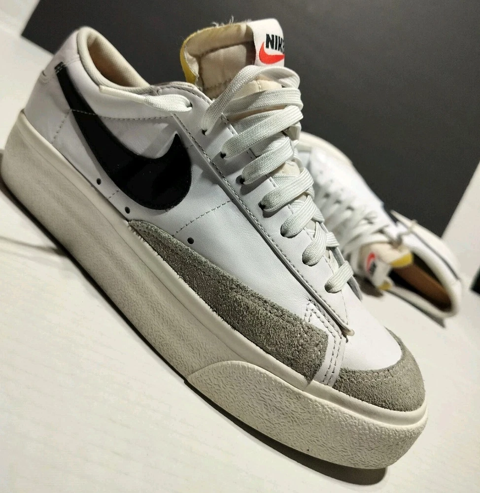 This Nike Blazer Platform Low sneaker is a must-have for women who love sports and casual wear. The shoe is a size 9.5 with a lace-up closure and a standard shoe width. It has a low-top style and is made of white leather and black fabric lining. The outsole is made of rubber and has a DJ0292-101 style code. The Nike Blazer sneaker is suitable for various occasions such as activewear, casual wear, and workwear. It is perfect for gym and training, walking, skateboarding, and running & jogging. The shoe is from the Nike Blazer product line and was released in 2021. It has been rarely used and is in flawless condition.