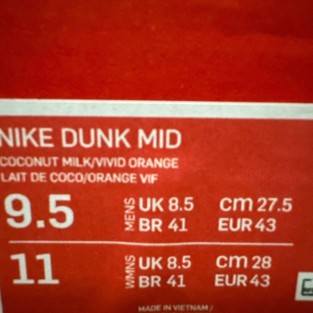 Shoes are brand new, 9.5 US shoe size. The box does not have a lid due to being bought off of the Nike wall. Shoes are in new condition.