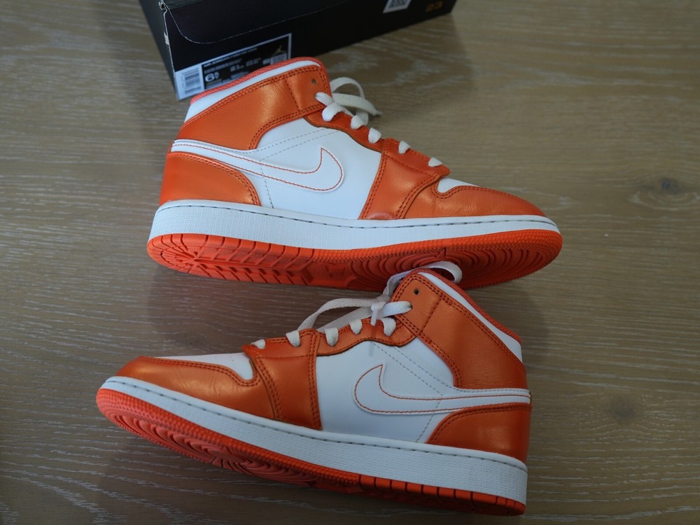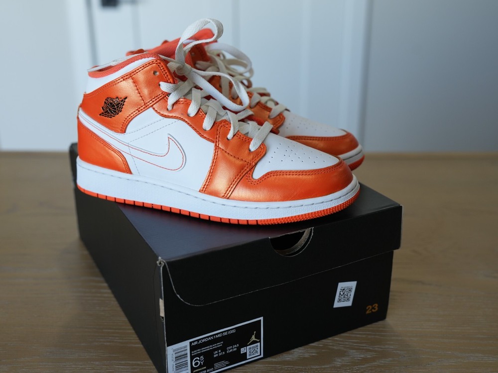 Size (GS) 6.5 Youth - Jordan 1 Mid SE Electro Orange 2021. Only worn a couple of times very light used.