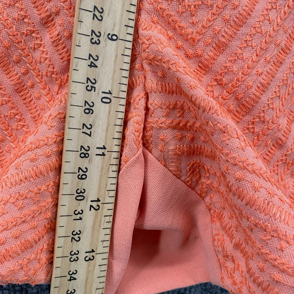 Love these shorts! The coral color is vibrant, and the embroidered details add such a cute touch. Sits comfortably at mid-rise with perfect pocket placement. They feel gently worn but still in great shape—super soft and lightweight for summer. The fit is true to size, and the free returns take the stress out of buying! Would definitely recommend.