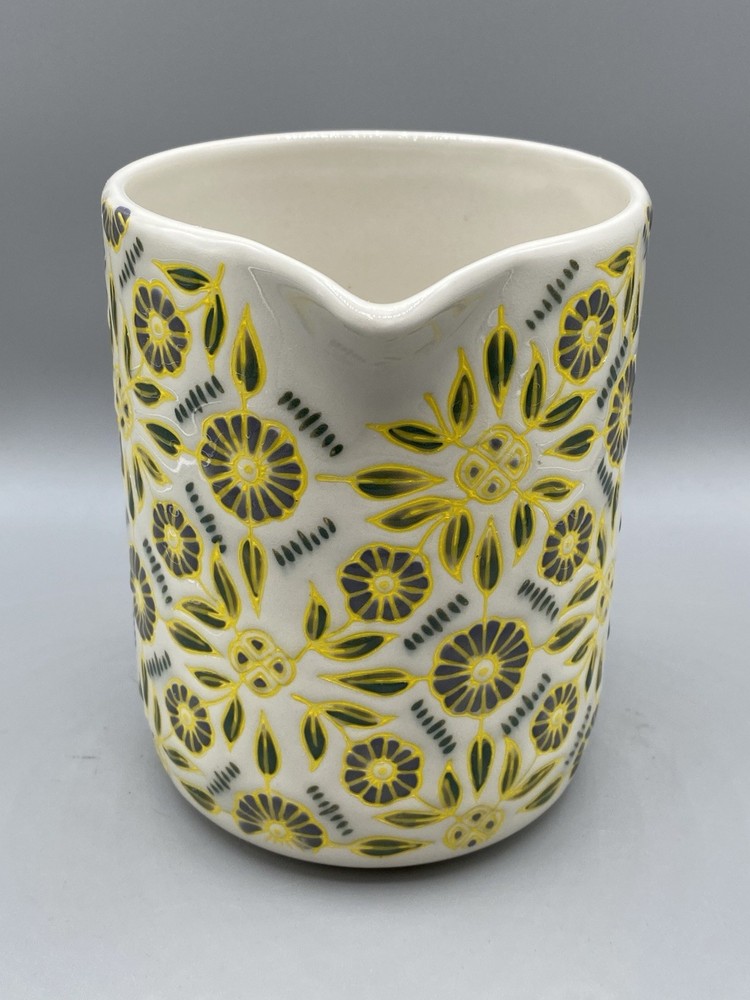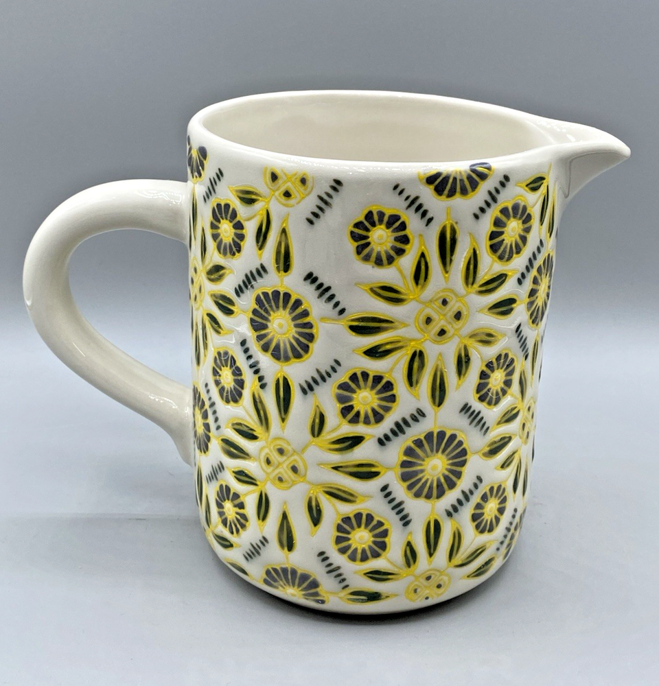 Small Ceramic Pitcher 6" H w/Yellow/Gray Wax Relief Pattern by Creative Co-op Please see photos for details