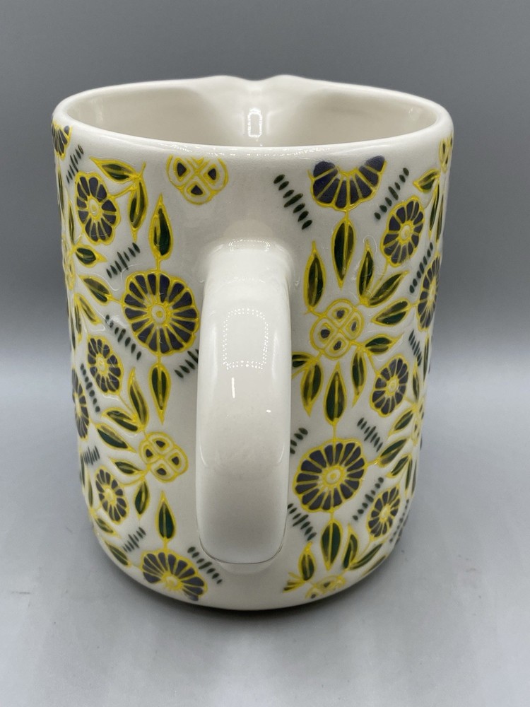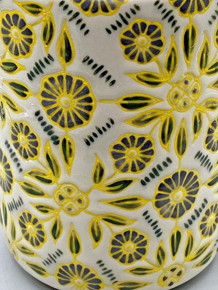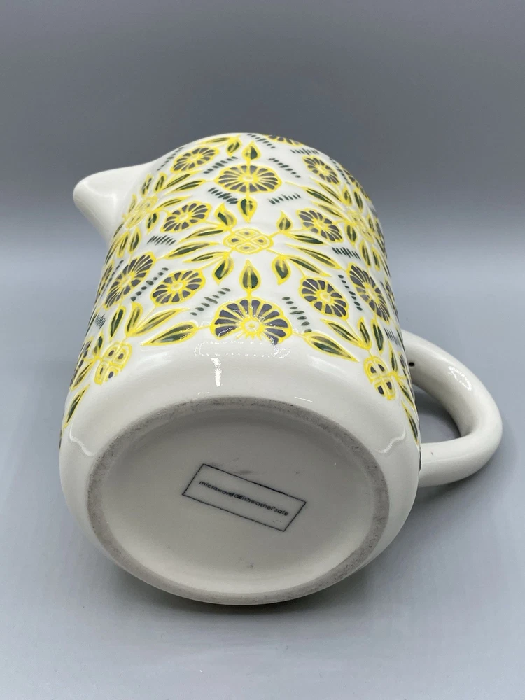 Small Ceramic Pitcher 6" H w/Yellow/Gray Wax Relief Pattern by Creative Co-op Please see photos for details...