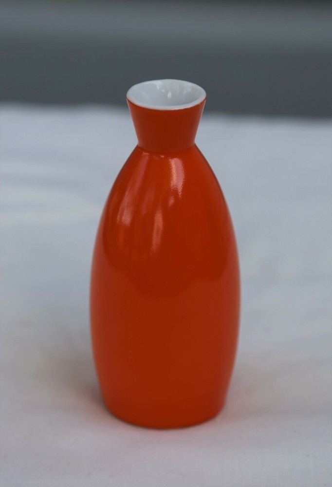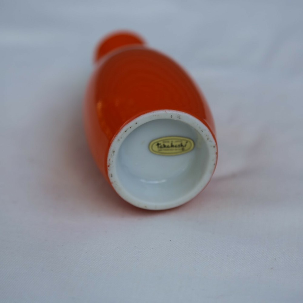 Beautiful small Vintage Orange Porcelain Takahashi Vase from Japan with original sticker. Sake style in excellent condition. Measures 5.5" H x 1" D.