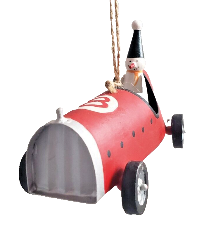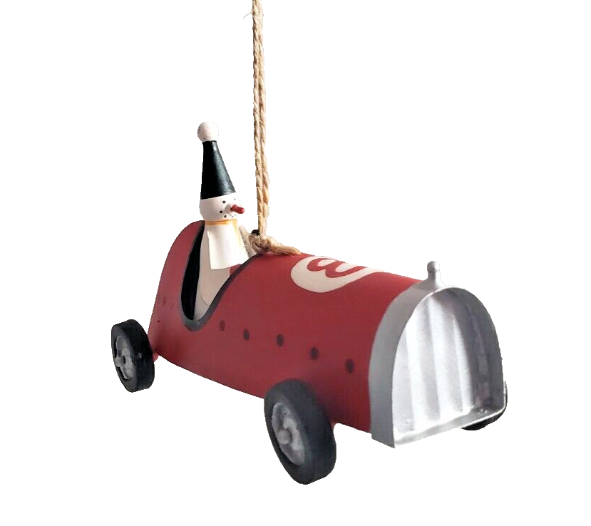 This adorable snowman in a retro race car ornament is such a fun holiday find! The vintage-inspired tin design has so much charm, and the 5.25" size makes it stand out perfectly on the tree. The hanging cord is sturdy, and the playful snowman driver adds a whimsical touch. Great quality and a must-have for Christmas collectors!