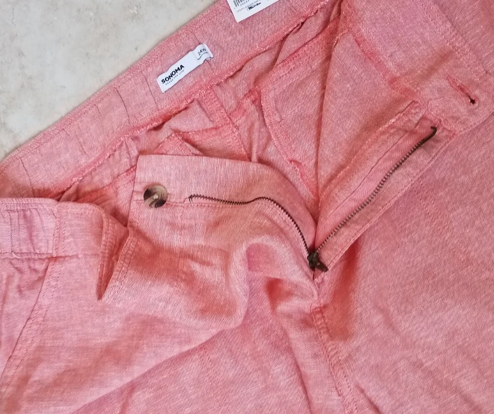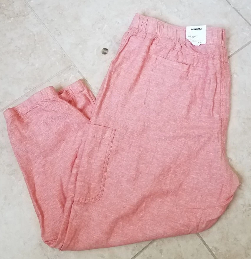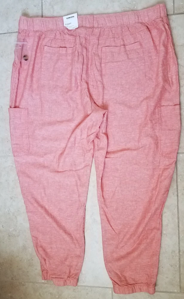Sonoma Women Mid Rise Linen Blend Utility Cargo Jogger Oak Orange Size 24W NEW Measurements Laying flat: waist approx. 22in across inseam approx 28.5in length approx 42in Thank you for Shopping ! Ships Fast!