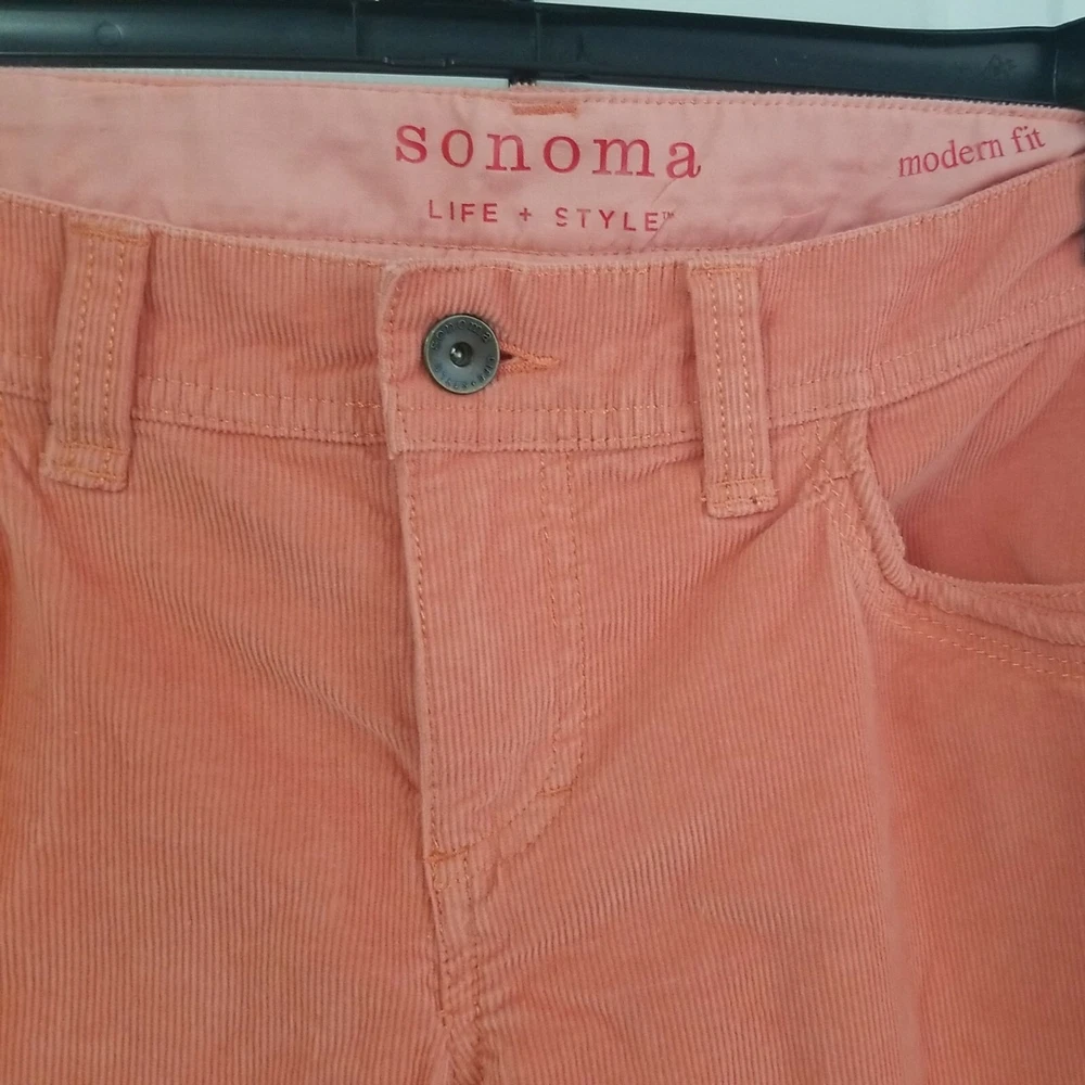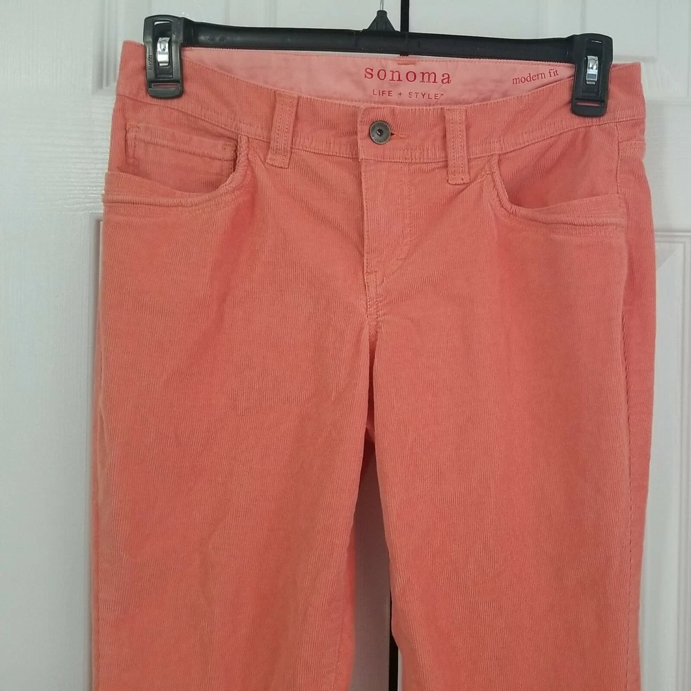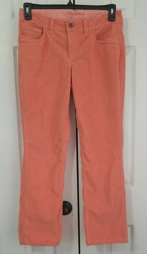 Sonoma Womens Corduroy Denium Modern Fit Pink/Orange Pants Mid Rise Sz 6. Measurements are approximate....