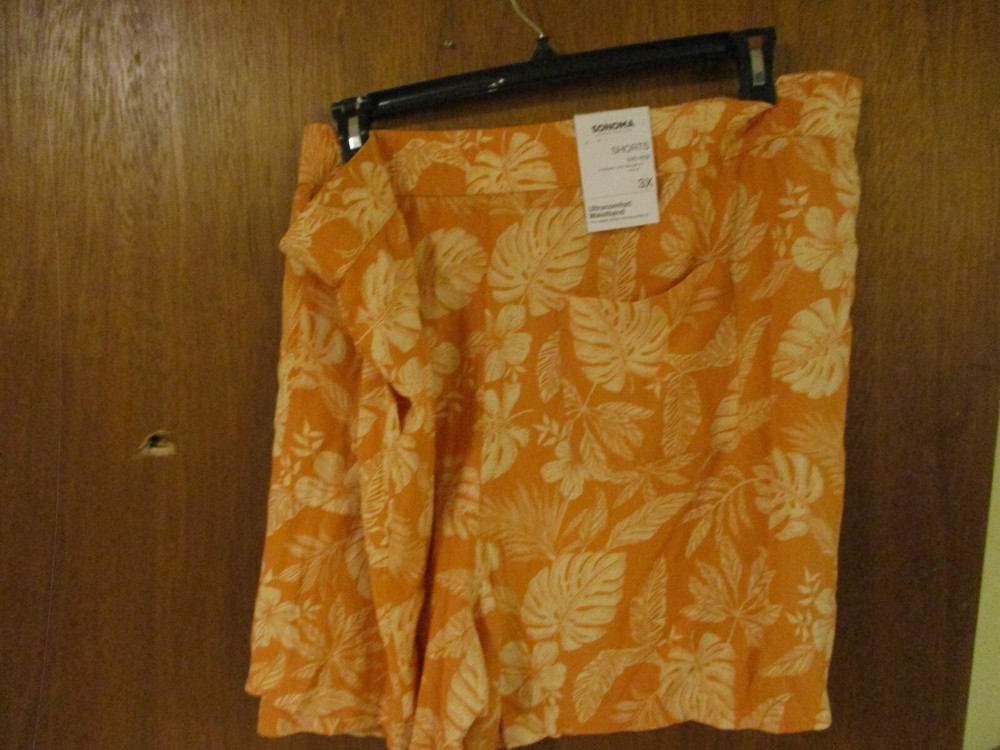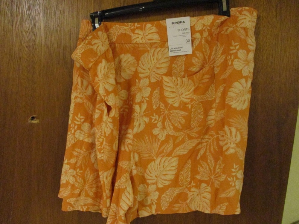 Sonoma Women's Rayon Shorts Size: 3X Waist 50" Hips: 60" Length: 19" Color: Orange with Flowers Ultra Comfort Elastic Waistband Mid Rise Straight Through Hip & Thigh Hits Mid Thigh 2 Front Pockets 2 Back Pockets Rayon Retail Value $35.00 NWT