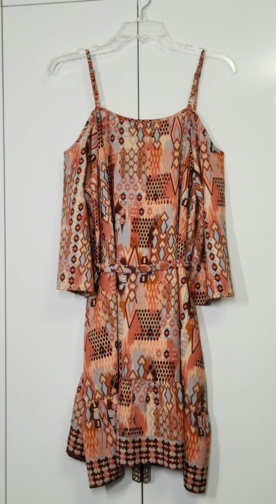 This dress features a geometric pattern in a vibrant multicolor design, perfect for parties, or casual wear.