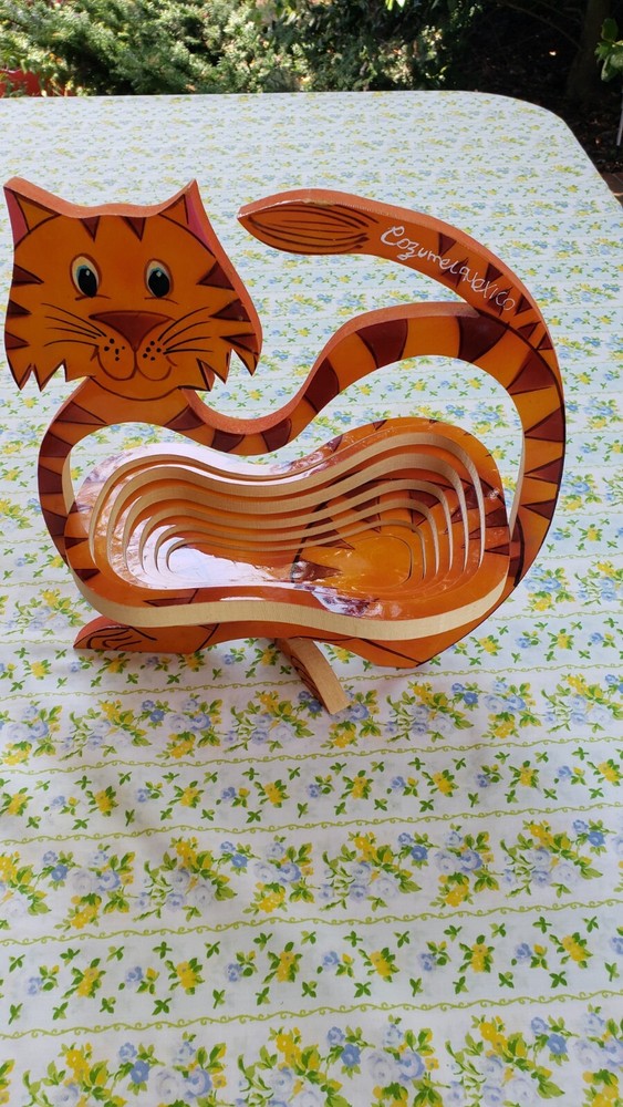 Spiral Cut Collapsible Wood Bowl Decor W Cat Souvenir Cozumel Mexico. Has a bit of peeling of paint on edges Please see photos Please request more pictures if in doubt as I try to list all my items so there are no hidden surprises -All questions welcome -Shipped from a clean pet, smoke free friendly home I try to reuse all packing materials to help our 🌏 -Be sure to check out my other items as you never know what you may find. -I will combine shipping. Please message me for quote. THANKS FOR LOOKING
