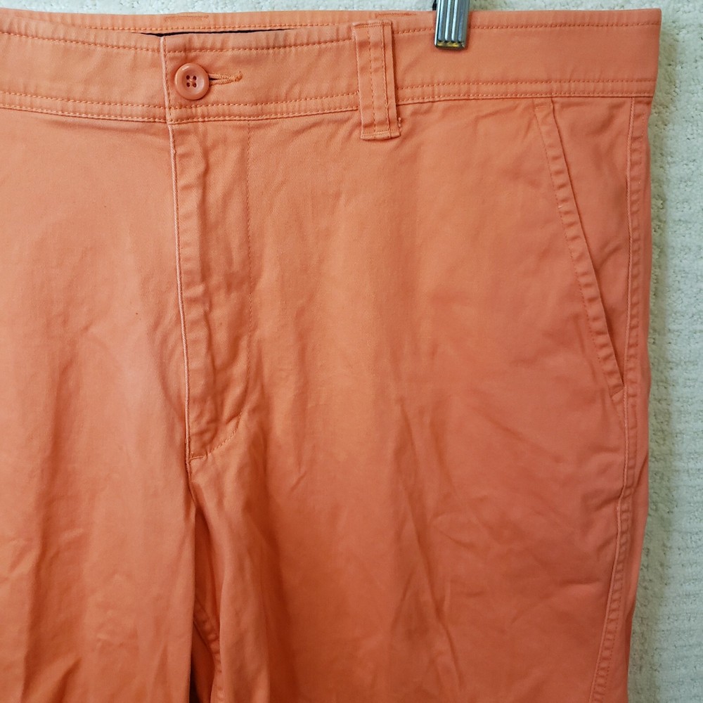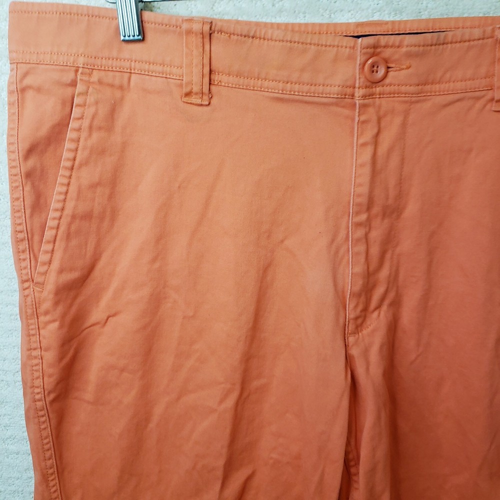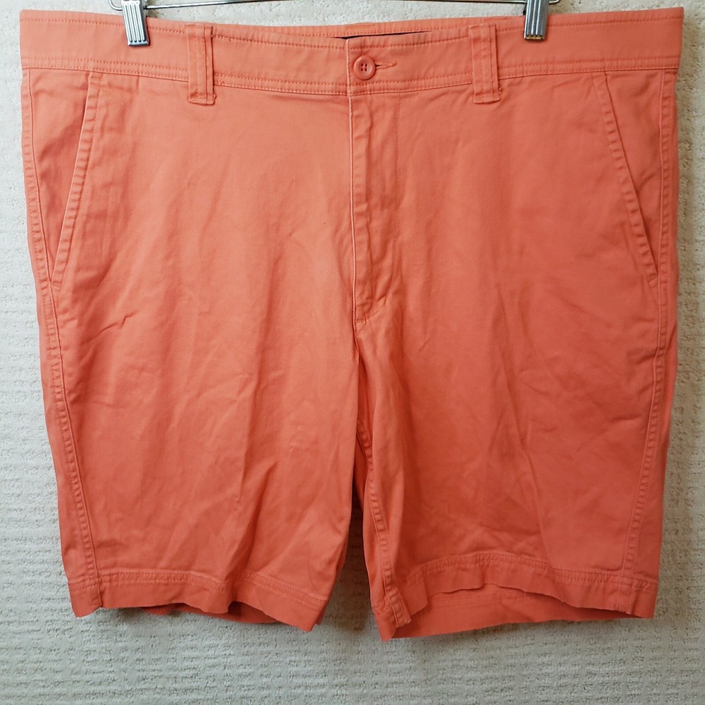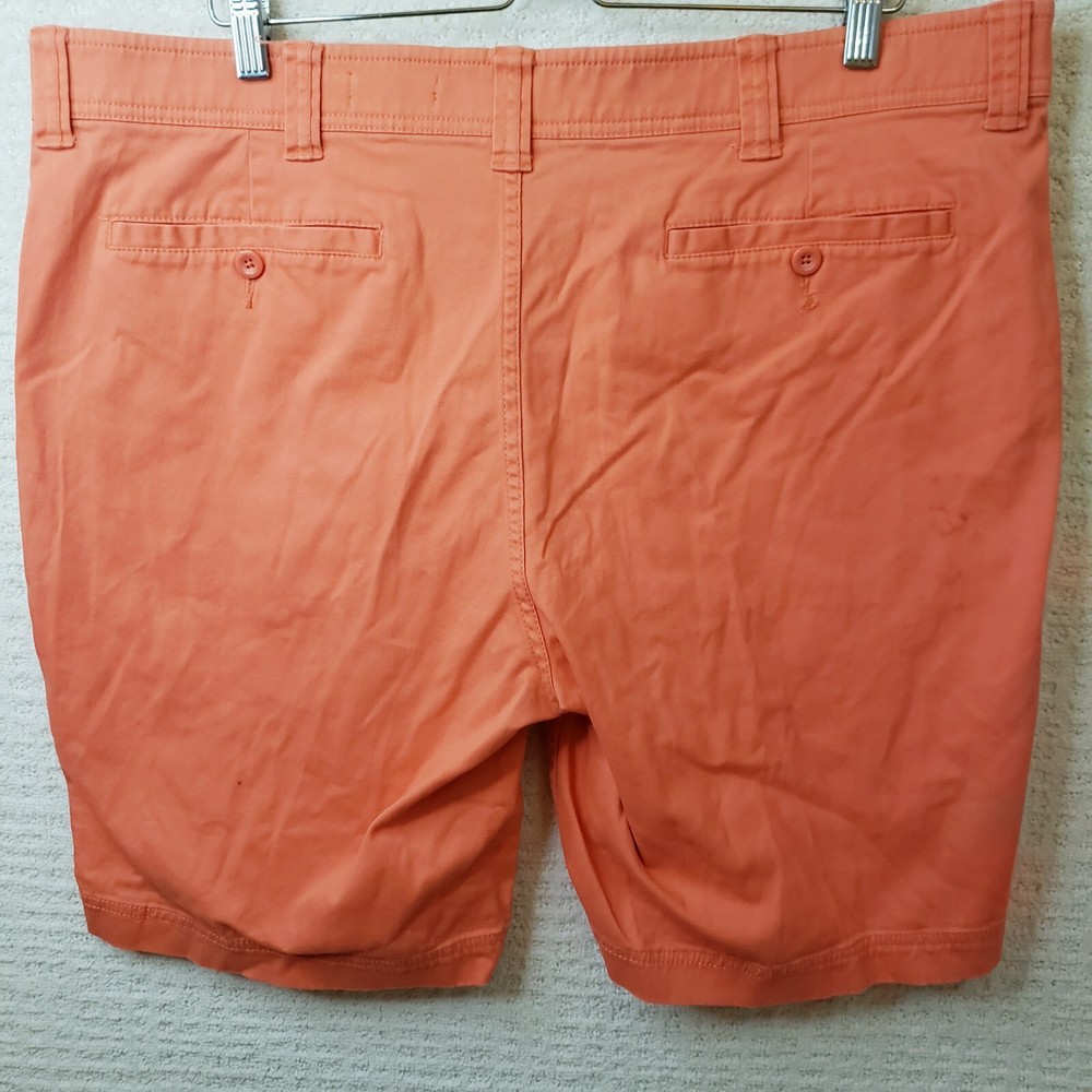 Elevate your summer wardrobe with these stylish St. John's Bay shorts in a vibrant orange coral color. The shorts feature a flat front design with a zip closure and a 5-pocket layout for all your essentials. The 9-inch inseam and mid-rise fit make these shorts perfect for casual occasions, while the stretch fabric ensures maximum comfort. These chino-style shorts are made of light-wash cotton and are machine washable for easy care. Perfect for spring and summer seasons, these shorts are a great addition to your wardrobe. Shop now for this unit in men's size 40. Shorts are in Excellent Preowned Condition with no stains or blemishes.