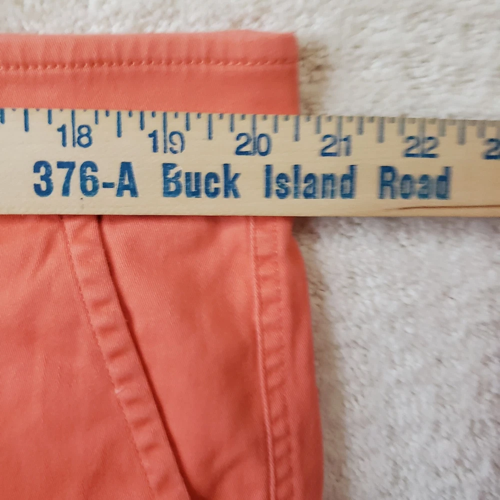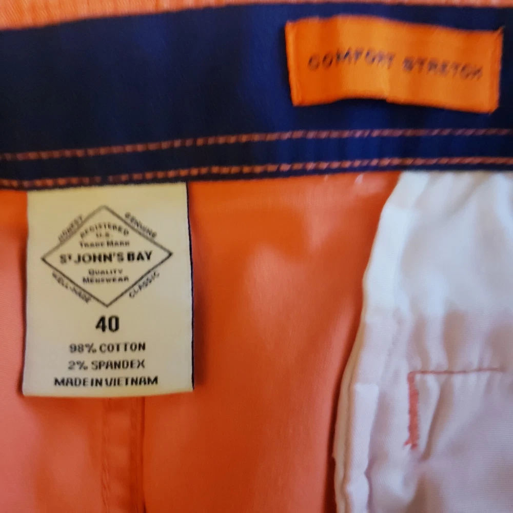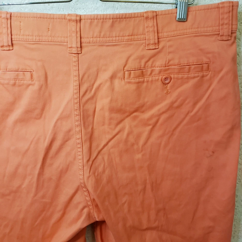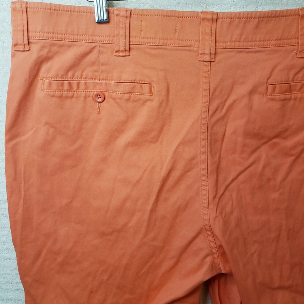 Elevate your summer wardrobe with these stylish St. John's Bay shorts in a vibrant orange coral color. The shorts feature a flat front design with a zip closure and a 5-pocket layout for all your essentials. The 9-inch inseam and mid-rise fit make these shorts perfect for casual occasions, while the stretch fabric ensures maximum comfort. These chino-style shorts are made of light-wash cotton and are machine washable for easy care. Perfect for spring and summer seasons, these shorts are a great addition to your wardrobe. Shop now for this unit in men's size 40. Shorts are in Excellent Preowned Condition with no stains or blemishes.