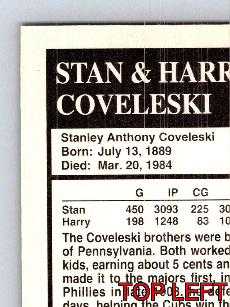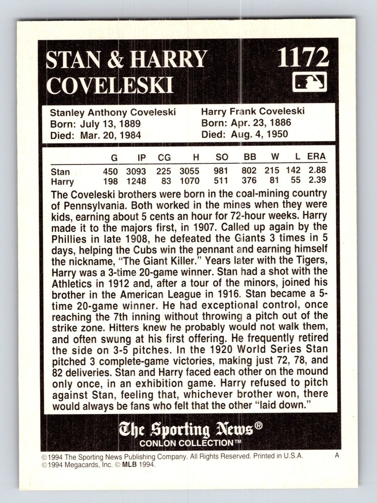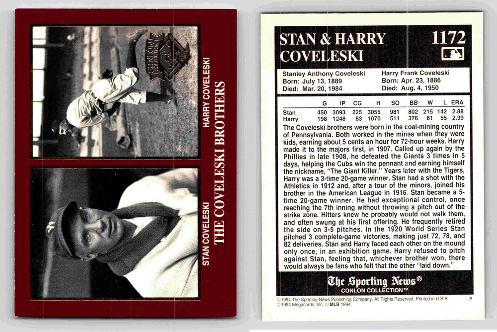 Just got this amazing card for my collection! The Conlon photography really brings these baseball legends to life. Such a cool piece of history featuring the famous Coveleski brothers. The quality is fantastic and it looks incredible in my display case.