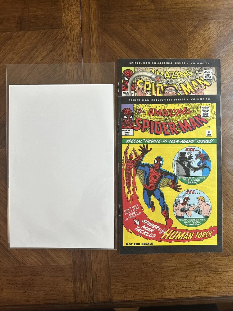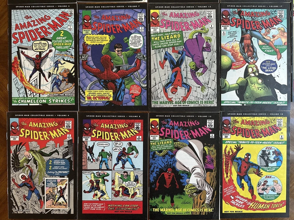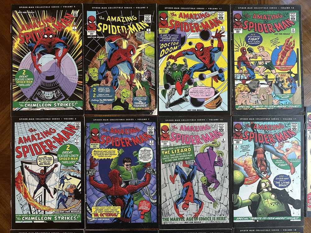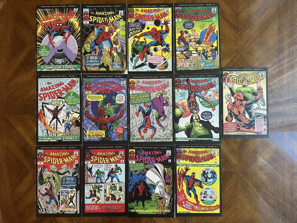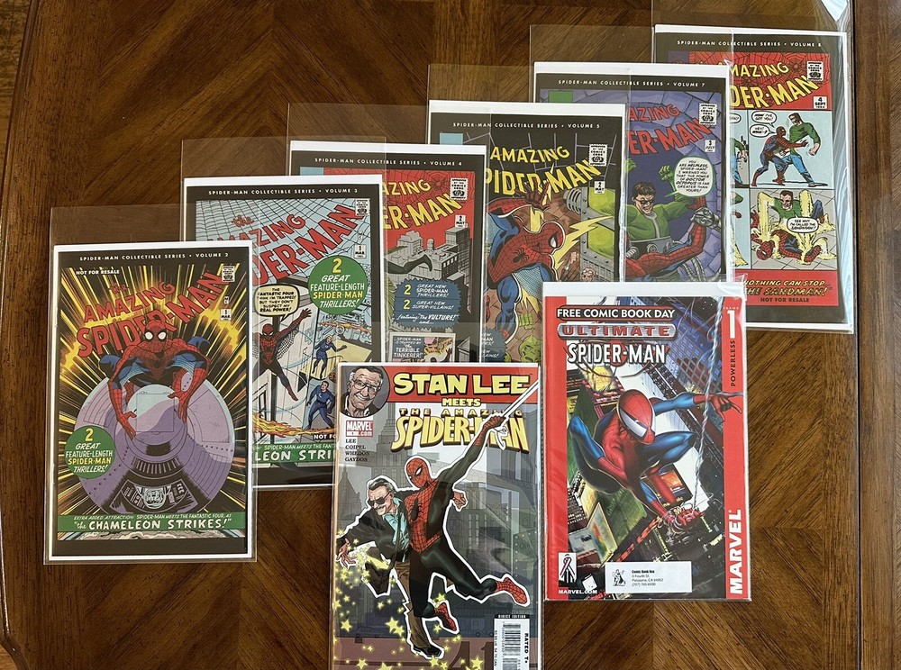 Hello! Stored in safe, cool, and smokeless home. Questions welcome! Check out my other listings. This listing contains 1. Stan Lee Meets The Amazing Spider-Man VF/NM LOW PRINT RUN 2. Free Comic Book Day Ultimate Spider-Man Issue 1 VF+ and 13 Sunday Newspaper Spider-Man Collectible Series Volumes 2-5, 7 & 8, 11 - 13, 16 - 18, and 24 Despite the Collectible Series being printed on basically tissue paper & folded in to Sunday editions of the newspaper all issues are VF/NM or NM- //EXCEPT// for Volume 5, which is barely graded 0.5 due to the missing corner. Please see photos. Details about the Collectible series: In August of 2006, News America Marketing announced that beginning Sunday, August 20, it would be issuing a series of reprint Spider-Man comics that would essentially start at the very first appearance of Spidey Amazing Fantasy #15from 1963, and advance through the series. The comics would be distributed in Sunday newspapers across the country to over 10 million households. Each comic would be split in half and spread across two consecutive weeks. More details here: https://spiderfan.org/title/comics/spiderman_collectible_series.html