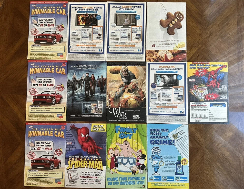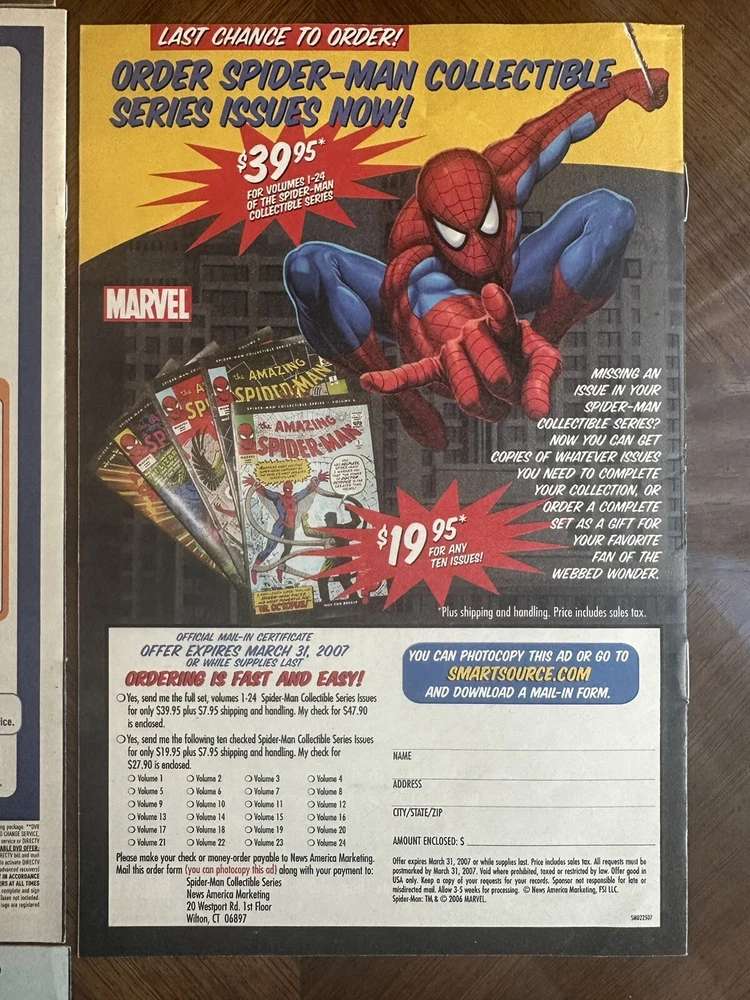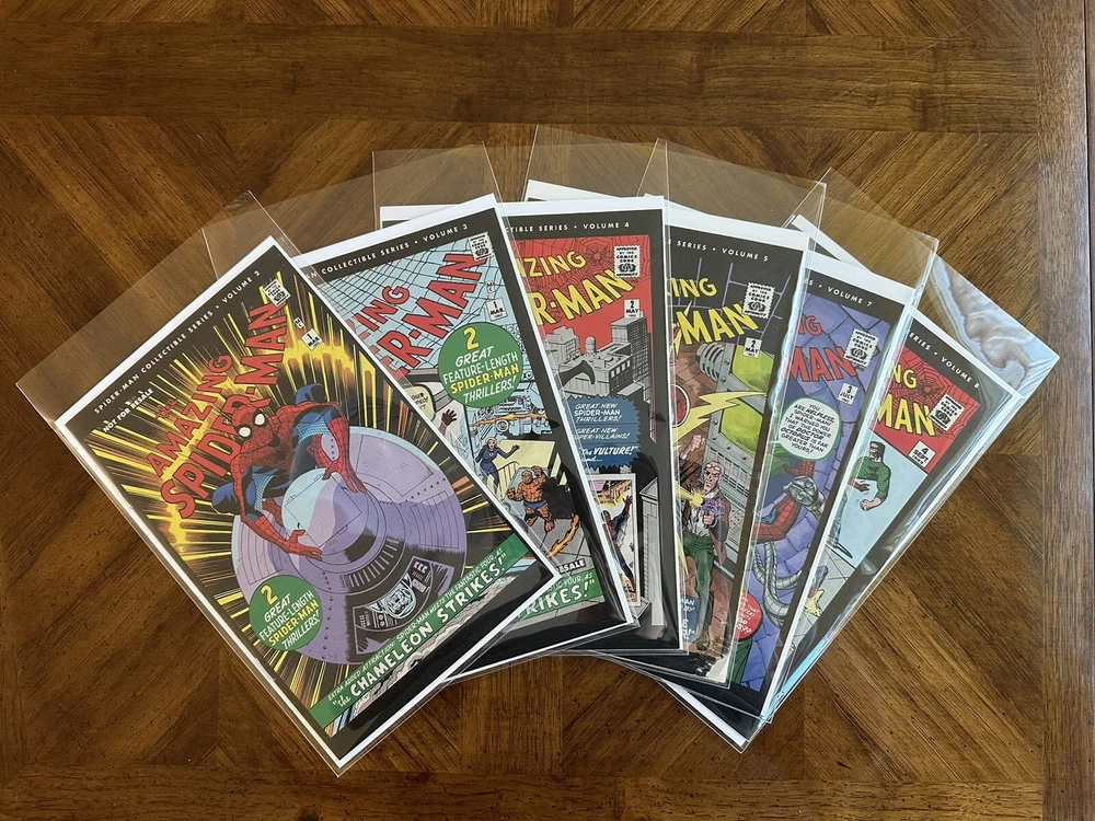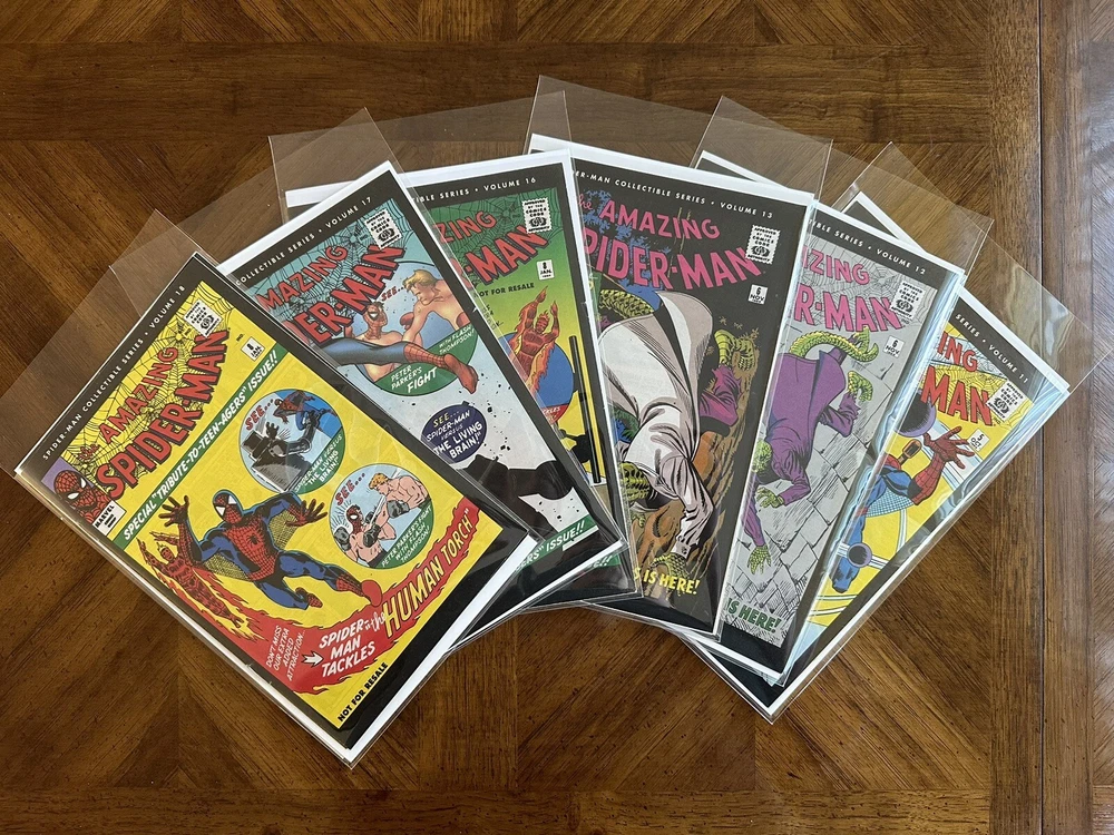 Hello! Stored in safe, cool, and smokeless home. Questions welcome! Check out my other listings. This listing contains 1. Stan Lee Meets The Amazing Spider-Man VF/NM LOW PRINT RUN 2. Free Comic Book Day Ultimate Spider-Man Issue 1 VF+ and 13 Sunday Newspaper Spider-Man Collectible Series Volumes 2-5, 7 & 8, 11 - 13, 16 - 18, and 24 Despite the Collectible Series being printed on basically tissue paper & folded in to Sunday editions of the newspaper all issues are VF/NM or NM- //EXCEPT// for Volume 5, which is barely graded 0.5 due to the missing corner. Please see photos. Details about the Collectible series: In August of 2006, News America Marketing announced that beginning Sunday, August 20, it would be issuing a series of reprint Spider-Man comics that would essentially start at the very first appearance of Spidey Amazing Fantasy #15from 1963, and advance through the series. The comics would be distributed in Sunday newspapers across the country to over 10 million households. Each comic would be split in half and spread across two consecutive weeks. More details here: https://spiderfan.org/title/comics/spiderman_collectible_series.html