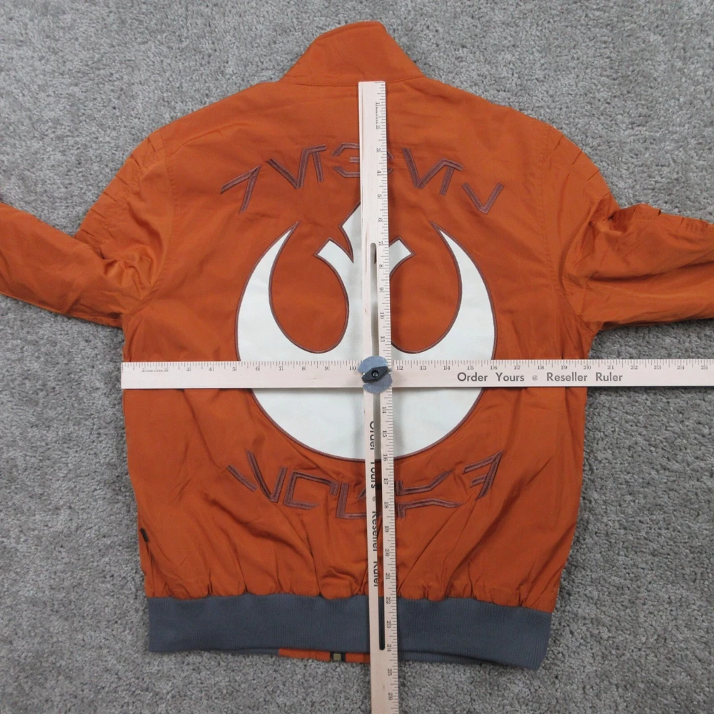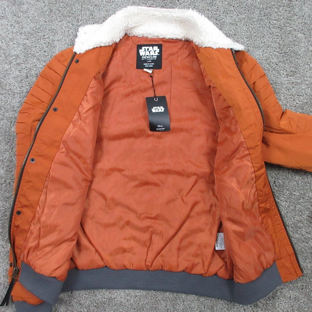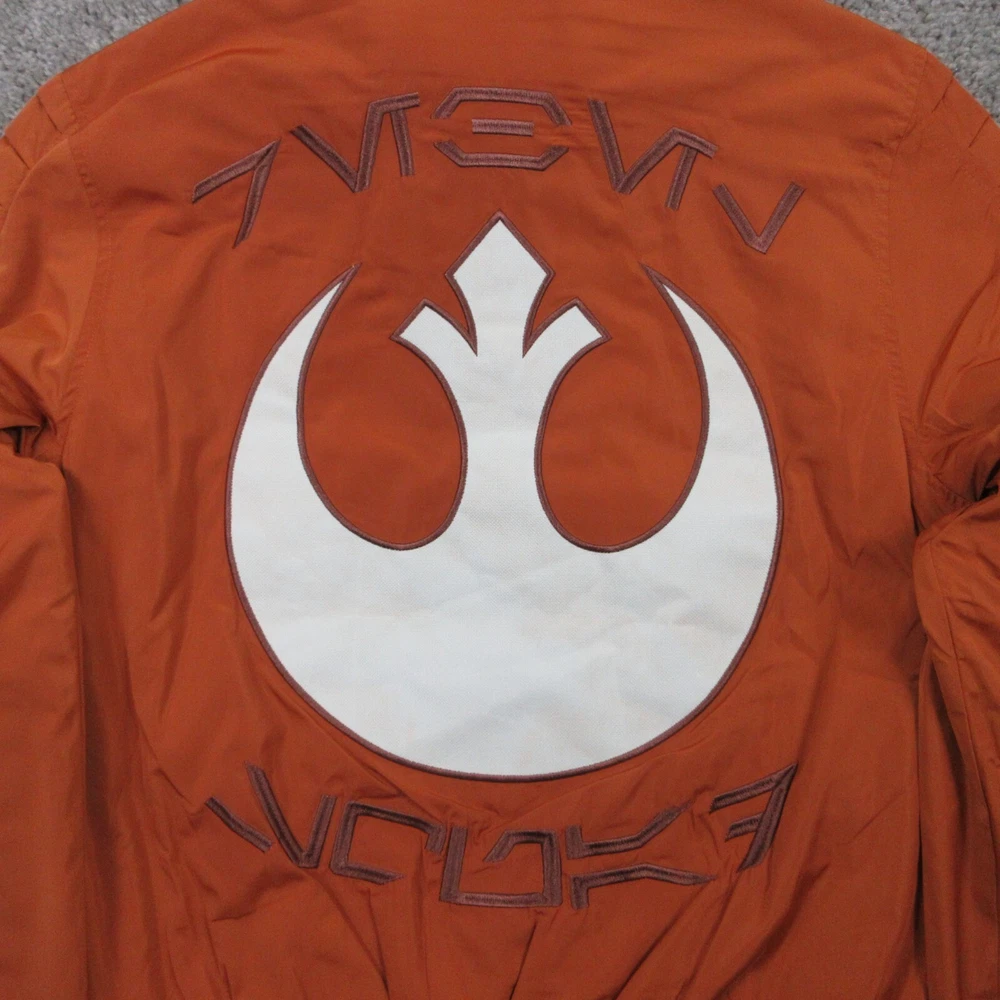 This jacket is awesome! The bright orange Rebel Pilot design looks just like the movies—perfect for any Star Wars fan. The fit is spot-on for an XS, and the quality feels sturdy yet comfortable. Super fast shipping too, arrived even sooner than expected. Would absolutely buy again!