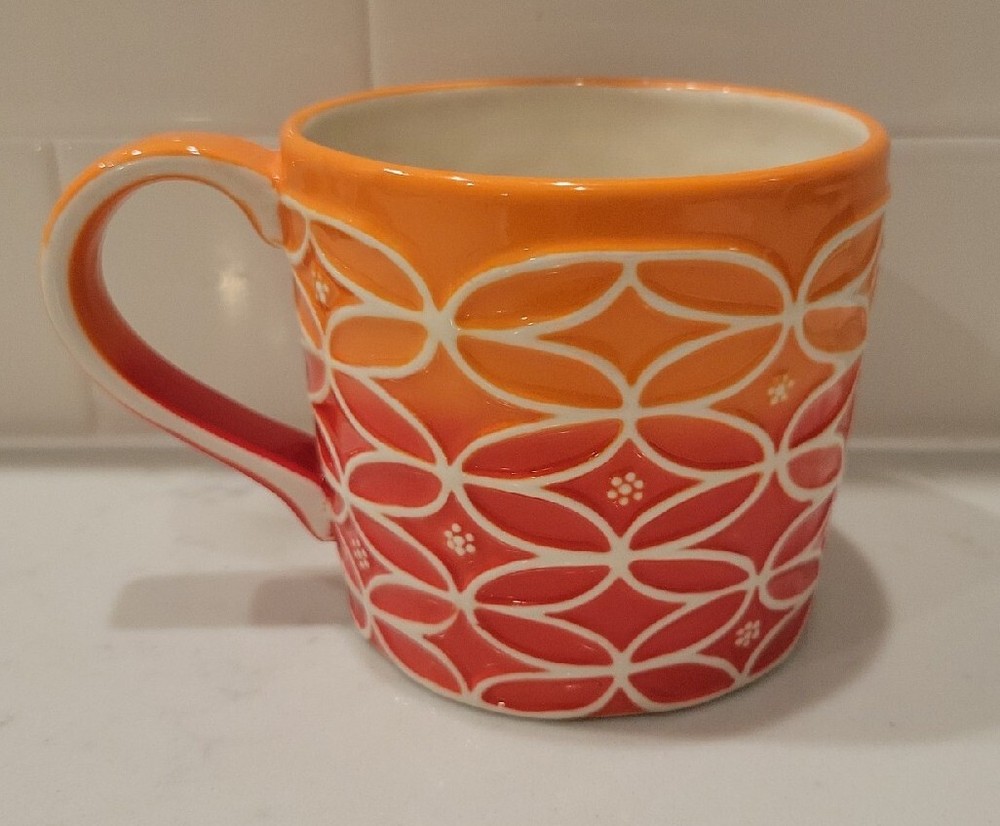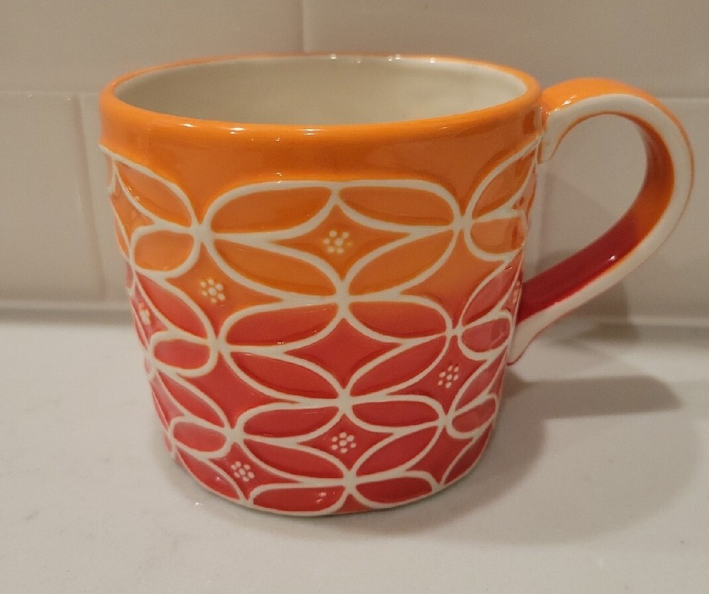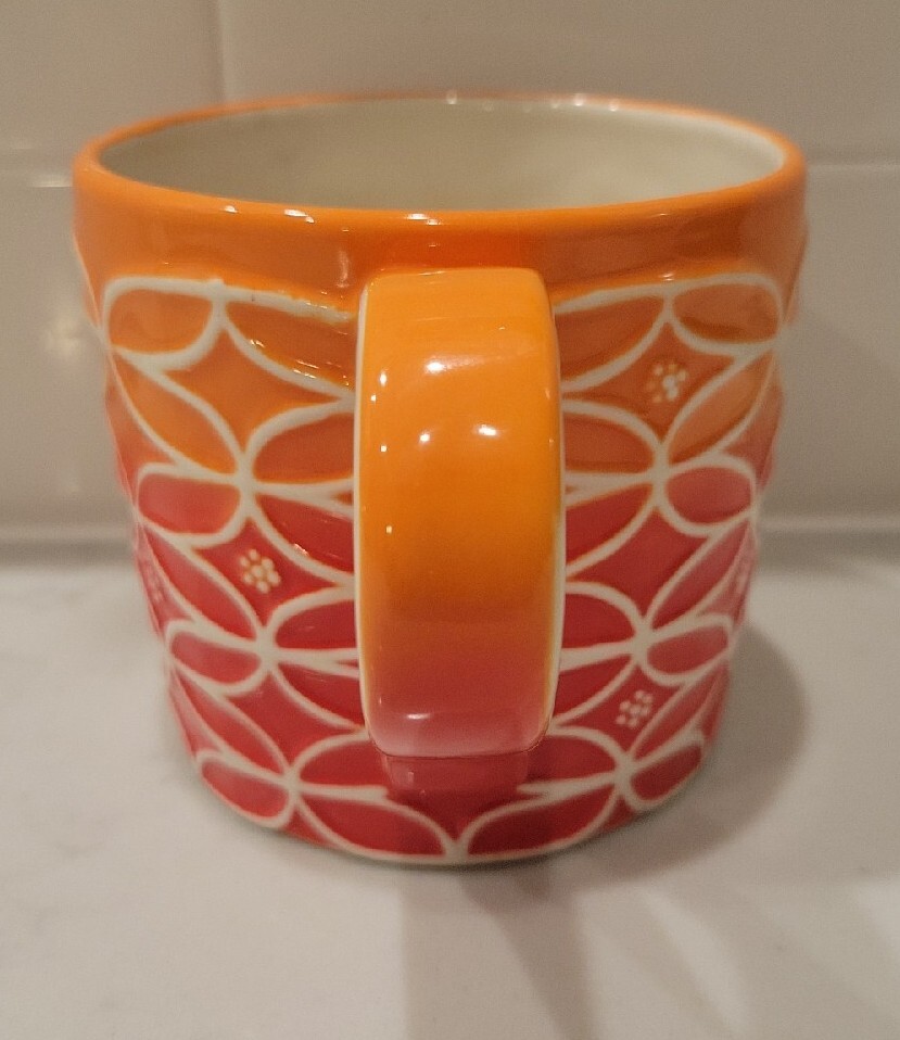 Starbucks 2009 Orange Ombre Mid Century Modern 14oz Coffee Tea Mug Fall Colors....