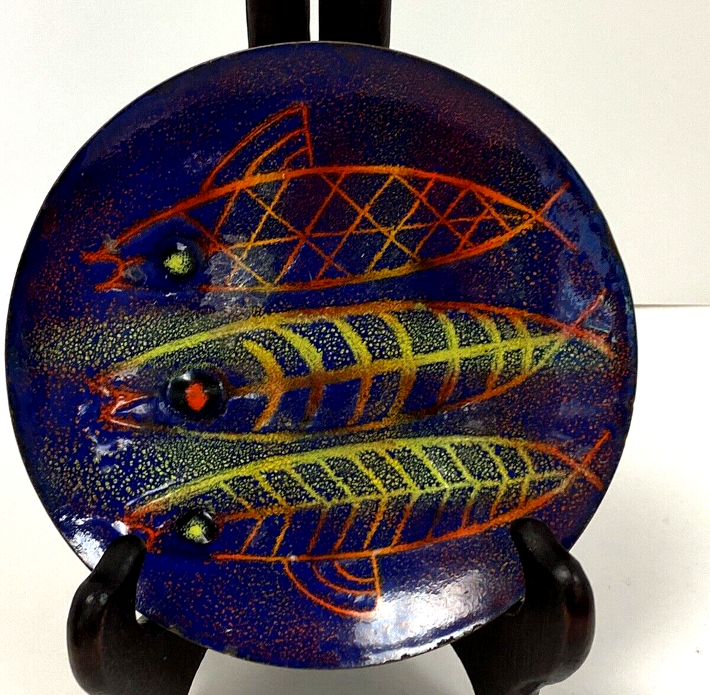 Steinbock Enamel Plate Dish MCM Fish 6" Diameter Bright Yellow Orange Vtg 1pc 6" Diameter MCM Retro Round 1pc Item Weight: .07 lb. Shipping Weight: 1 lb. Shipped via USPS 7x7x6 Box Buy with Confidence from Debz Personal Service Selling online since 2005 Specializing in Vintage Retro Mid-Century Antiques