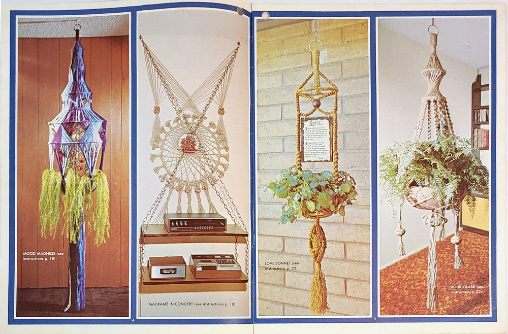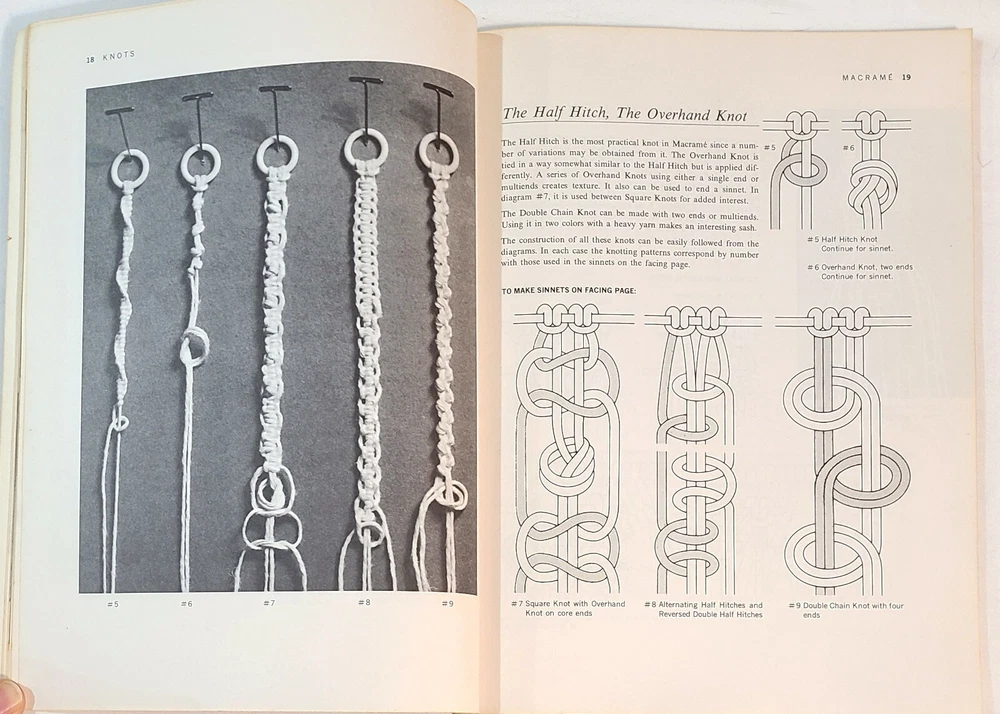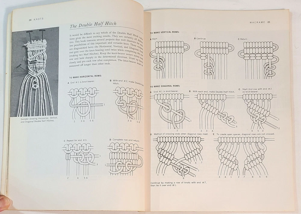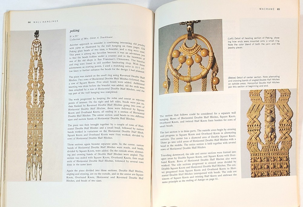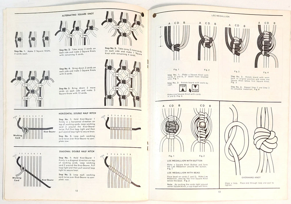 Two vintage macrame pattern books with a variety of projects - plant hangers, wall hangings, purses, belts, household items, and more. Detailed instructions and easy-to-follow knot diagrams. “Step-By-Step Macrame,” by Mary Walker Phillips. Western Publishing Company, 1970; paperback, 80 pages, 8-3/8" x 11-1/8". Very good condition; pages are in excellent condition but the cover shows signs of storage and handling. “Macra-Hangings Etc.,” by Thelma Lee. Lee Originals, 1975; paperback, 24 pages, 8-1/2" x 11". Overall in very good condition; pages are in excellent condition, the cover has a hole in the upper left corner and a tape-repaired tear on the back cover along with other signs of storage and handling. This listing is for pattern books, NOT finished items. From a smoke-free environment. All pattern books are SOLD AS IS; NO RETURNS. Please look carefully at all of the pictures, as they are an integral part of description. I have more macrame pattern booklets currently listed. If interested, click on the “Crafts” link under “Categories” to the left of this description. I do combine shipping!
