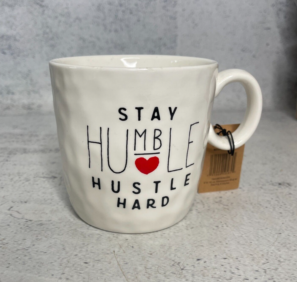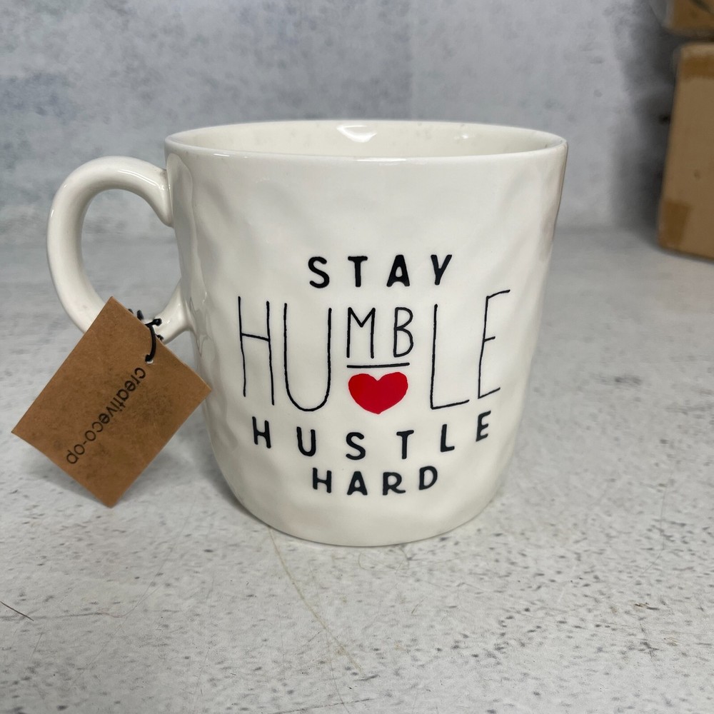 Stoneware Mug 10cm Stay Humble Hustle Hard Creative Co-Op Coffee Cup Gift ***Brand-New*** Product Description: Bring motivation to your morning routine with this brand new Creative Co-Op stoneware mug featuring the inspiring message "Stay Humble Hustle Hard." Designed for durability and style, this extra-large mug stands 10cm high with a 10cm diameter and holds a generous amount of your favourite hot beverage. The handcrafted look, complete with a subtly textured surface, adds a rustic charm to any kitchen. Crafted from high-quality stoneware , this mug is microwave, oven, and dishwasher safe , making it both practical and stylish. Perfect for coffee lovers, office desks, or as a thoughtful gift for someone who loves a daily dose of motivation. Important This item is brand new and in excellent condition. We have provided accurate product images and descriptions for your reference. Please review them carefully before making a purchase decision. The staging materials, including plants, pots, or other decorative items, used in product photos are for display purposes only. They are not included as part of the sale. The listing solely encompasses the main item described in the product description and does not include any additional accessories or staging materials. Photographs are taken with studio lights, which may cause spots of glare. Colours may vary on different screens.
