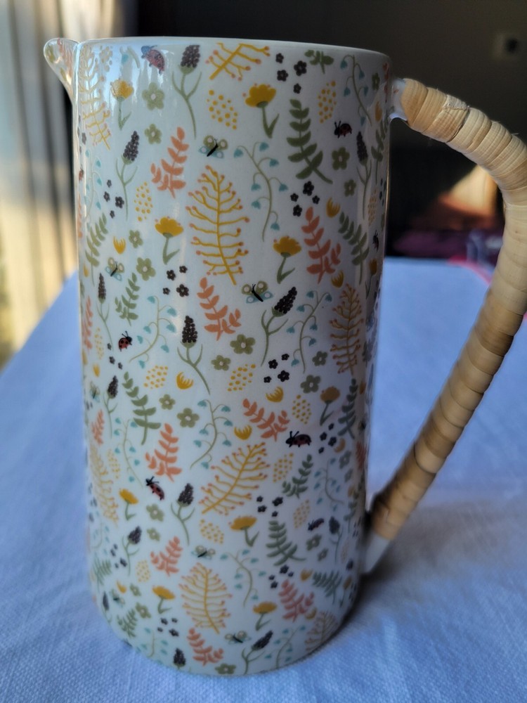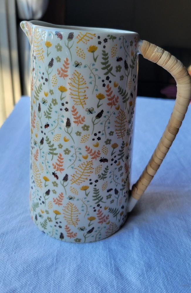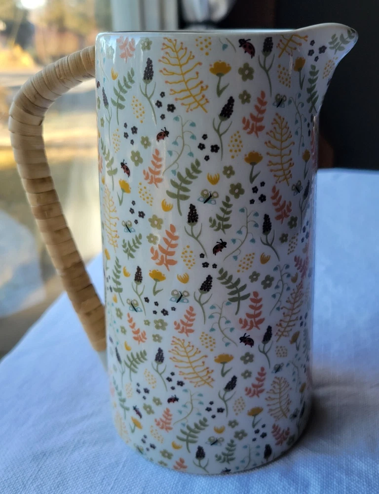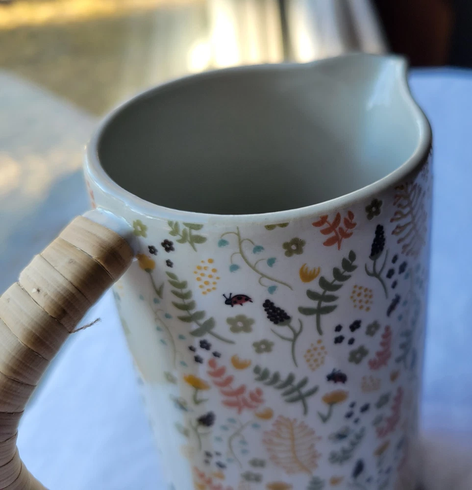 The Creative Co-Op Stoneware Pitcher features a charming farm house style with a vibrant multicolor floral pattern adorning its surface. Made of stoneware, this original pitcher is designed with elegant handles wrapped in rattan for a touch of rustic charm. Crafted using pottery techniques, this pitcher is a delightful addition to any kitchen or dining space, perfect for serving beverages. 5-1/2"L x 4"W x 6-3/4"H / 24 oz. 5-1/2"L x 4"W x 6-3/4"H / 24 oz. Color: Floral Pattern / Multi Color Floral Pattern / Multi Color Material: Stoneware Stoneware Add to cart Comprar con More payment options Please email us about this product. Share this This pitcher is perfect for serving friends and family. Made out of stoneware, this pitcher features a beautiful multi-colored floral pattern and a rattan wrapped handle. Serve refills of tea, lemonade, and water in a beautiful fashion! You may also like Artois pitcher $99.00 Hand-Painted Stoneware Pitcher with Debossed Florals $59.00 Eleadora pitcher $69.00 TEA CANISTER GIFT SET $109.00 Heart Art Handmade around the world. Sustainable artisan pieces, worldwide shipping. Inspired by travel. SEARCH RETURN POLICY INSTAGRAM TERMS OF SERVICE © 2025. All rights reserved. Made by Lanzi Spanish USD $