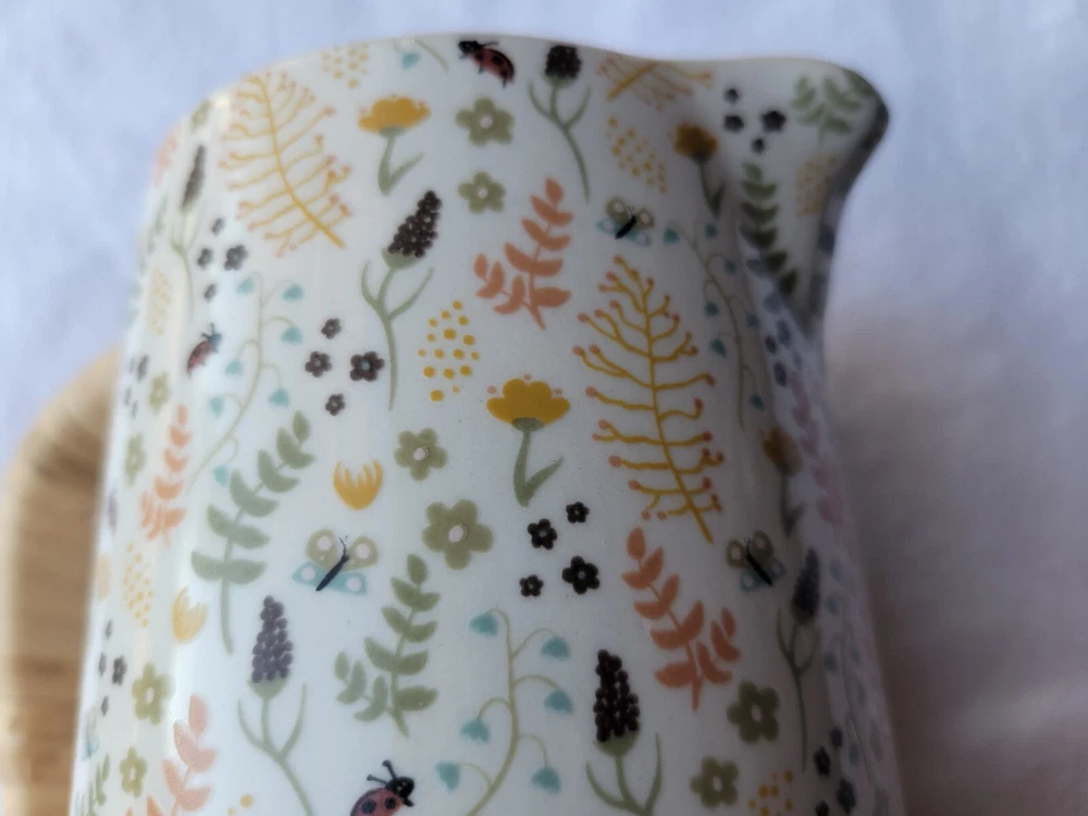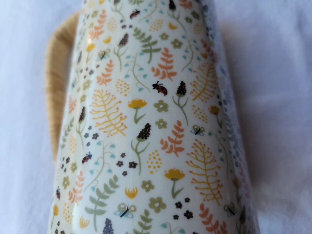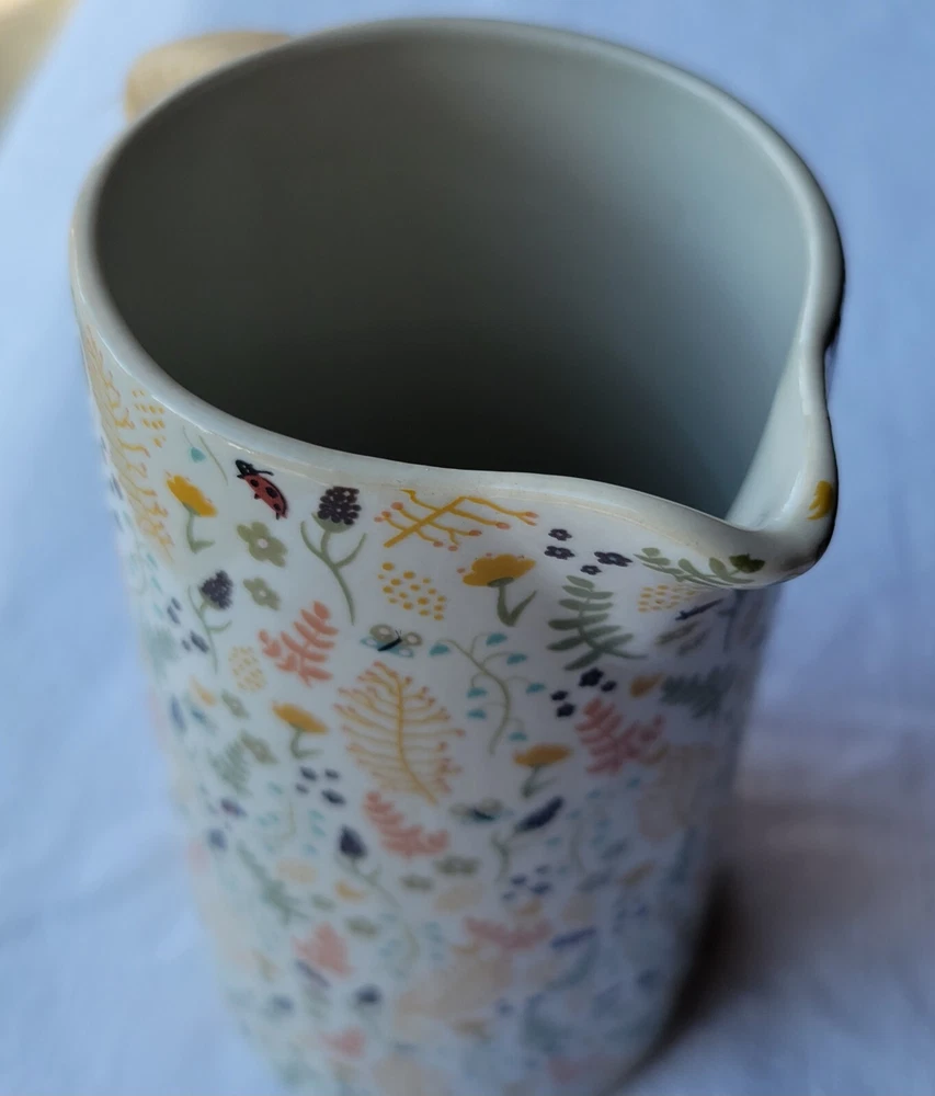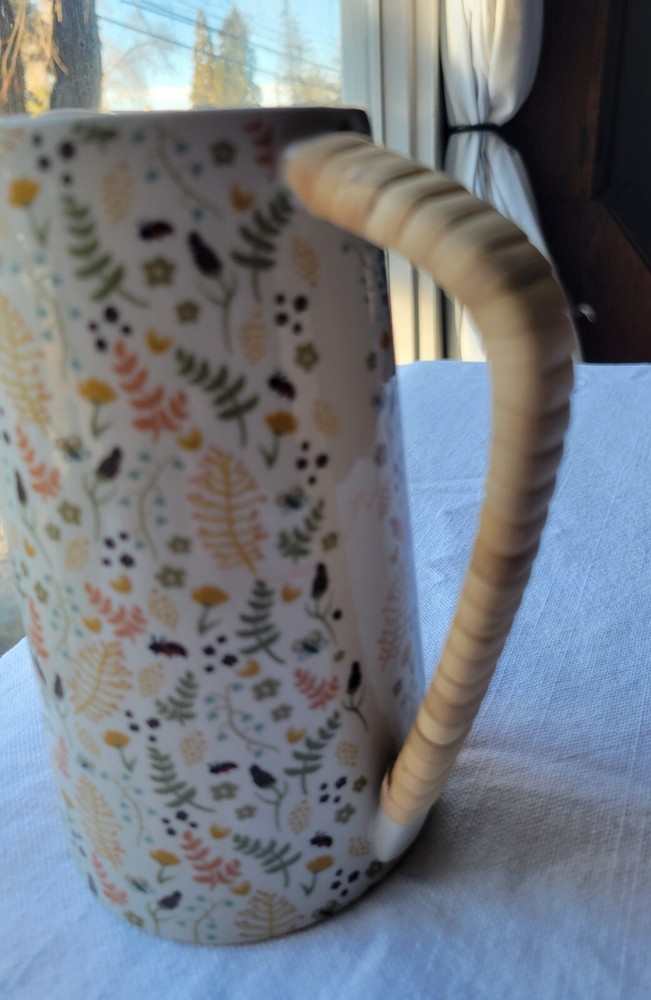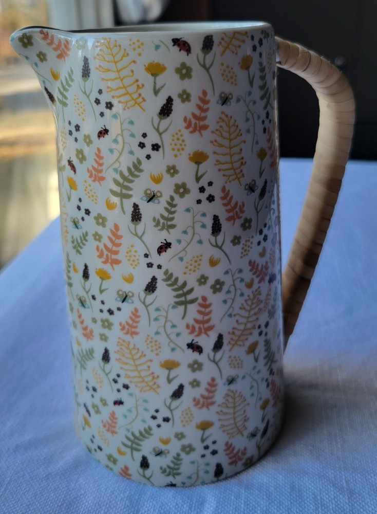 The Creative Co-Op Stoneware Pitcher features a charming farm house style with a vibrant multicolor floral pattern adorning its surface. Made of stoneware, this original pitcher is designed with elegant handles wrapped in rattan for a touch of rustic charm. Crafted using pottery techniques, this pitcher is a delightful addition to any kitchen or dining space, perfect for serving beverages. 5-1/2"L x 4"W x 6-3/4"H / 24 oz. 5-1/2"L x 4"W x 6-3/4"H / 24 oz. Color: Floral Pattern / Multi Color Floral Pattern / Multi Color Material: Stoneware Stoneware Add to cart Comprar con More payment options Please email us about this product. Share this This pitcher is perfect for serving friends and family. Made out of stoneware, this pitcher features a beautiful multi-colored floral pattern and a rattan wrapped handle. Serve refills of tea, lemonade, and water in a beautiful fashion! You may also like Artois pitcher $99.00 Hand-Painted Stoneware Pitcher with Debossed Florals $59.00 Eleadora pitcher $69.00 TEA CANISTER GIFT SET $109.00 Heart Art Handmade around the world. Sustainable artisan pieces, worldwide shipping. Inspired by travel. SEARCH RETURN POLICY INSTAGRAM TERMS OF SERVICE © 2025. All rights reserved. Made by Lanzi Spanish USD $