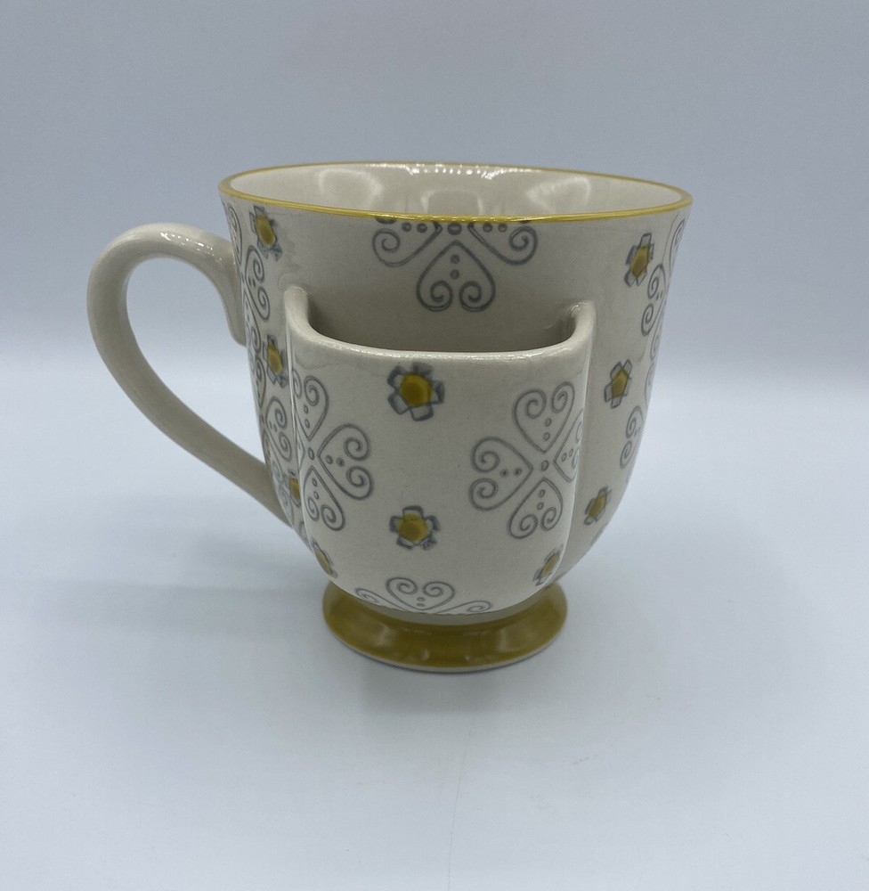 For the tea lover, a high-quality tea cup that has a tea bag holder attached. In excellent pre-owned condition. Please see photos. Microwave and dishwasher safe.