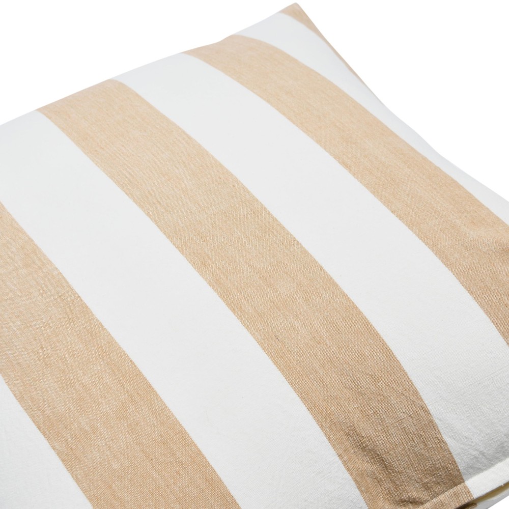 Add a touch of stylish comfort to any bed, chaise, or sectional with this stunning pillow cover; Striking hues and masterfully woven cotton make this the ultimate accent for any lounge space This classically designed pillow cover features a simple striped pattern on durable woven cotton Beige and white pillow cover with stripe print on front and back Express your constantly evolving style with the simple addition of this eye-catching pillow cover; Pillow cover only, insert not included Removable cotton pillow cover; in-seam zipper closure; machine wash warm, gentle cycle, do not bleach, tumble dry low, warm iron if needed, or hand wash Pillow cover measures 20" L x 20" W x 0" H
