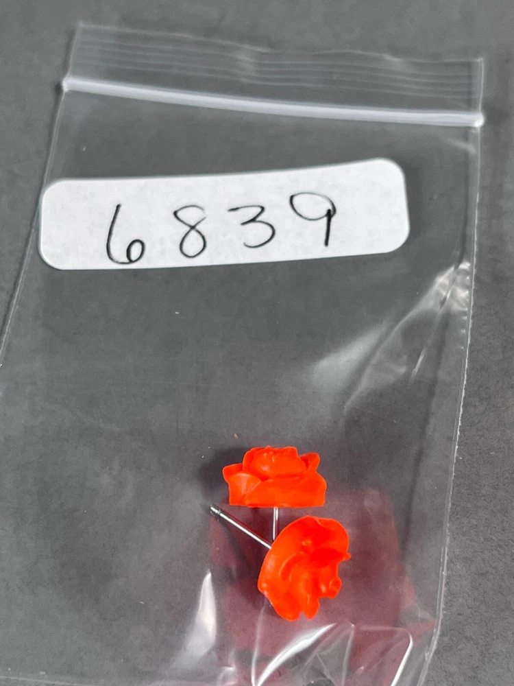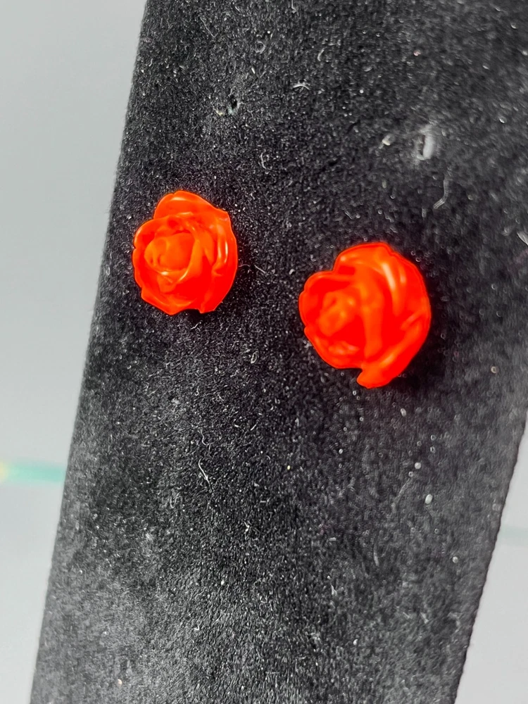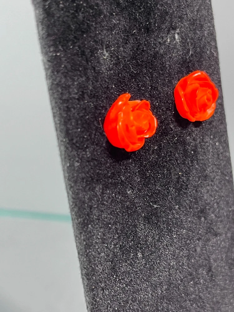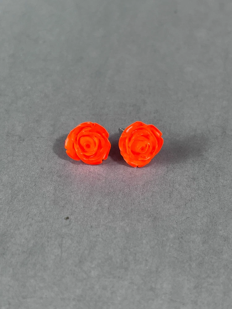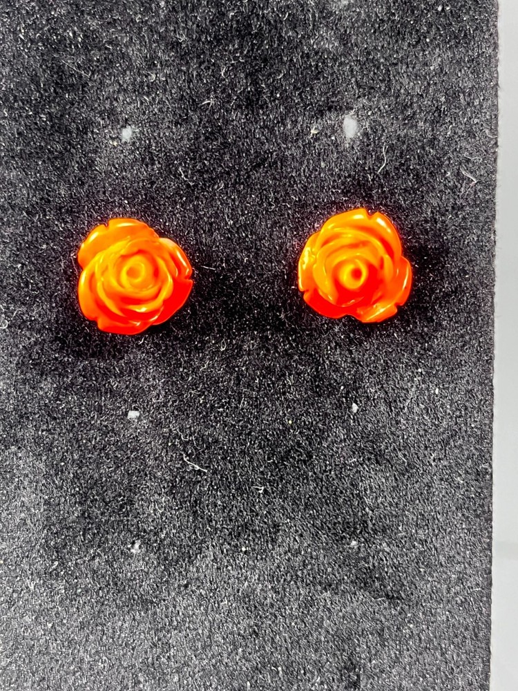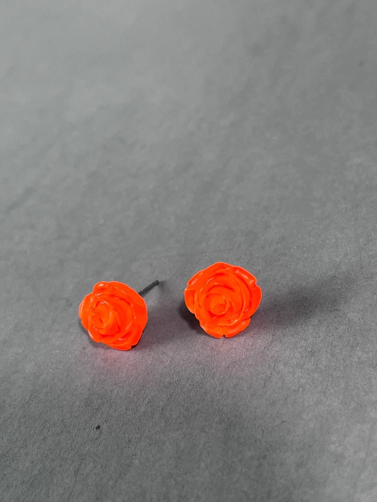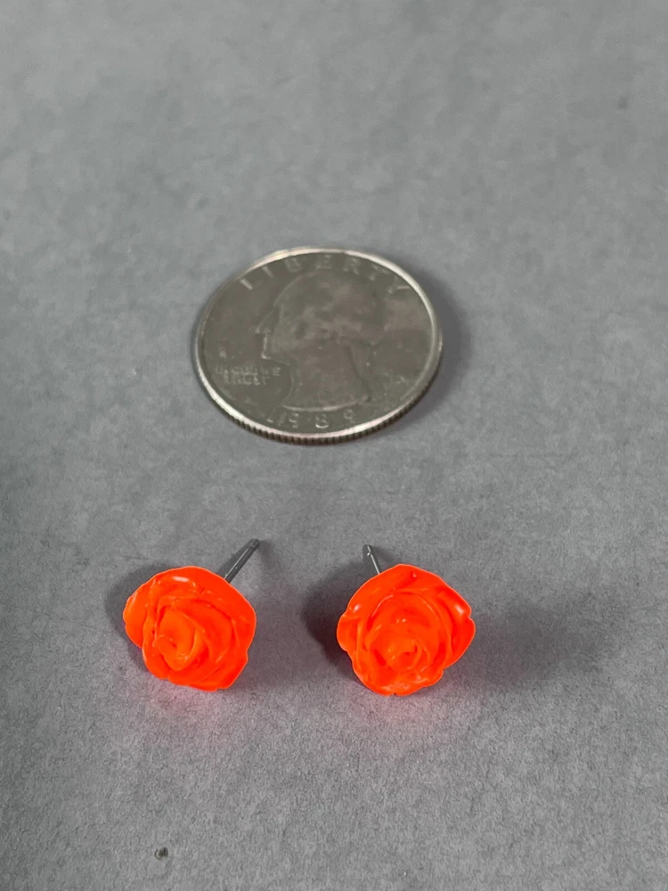 Up for sale is a set of studded rose pierced earrings. They are orange in color. They are in good pre owned condition! Please view all posted pictures as they are part of the description. If you have any questions please ask. Please check out my store for more great deals that are listed every day!!