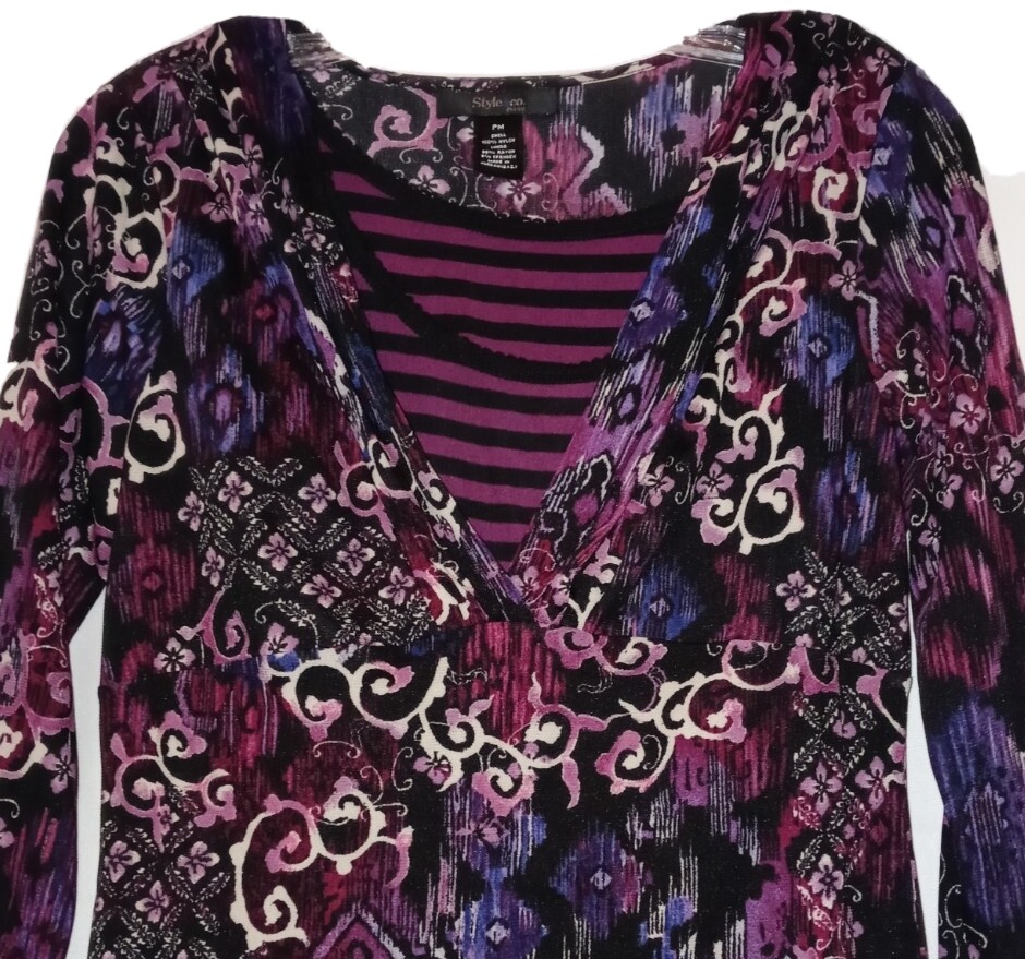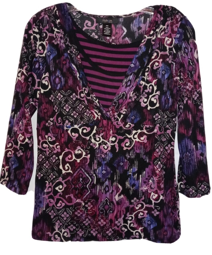 Up For Sale is a Cute Style and Co Macy's Brand artsy Stretch Knit shirt in petite medium/ PM. The bust is 34 - 36 " / Length is 23 INCHES Be sure to check out my other items for sale in my store! Everything is hand selected by me, carefully inspected, clean, smoke and pet free and ready for speedy fast shipping! Check back often, new items added daily! You never know what I'll list next! If you like unique wearable art boho clothing, add the Happy Hippie Shack to your favorites!