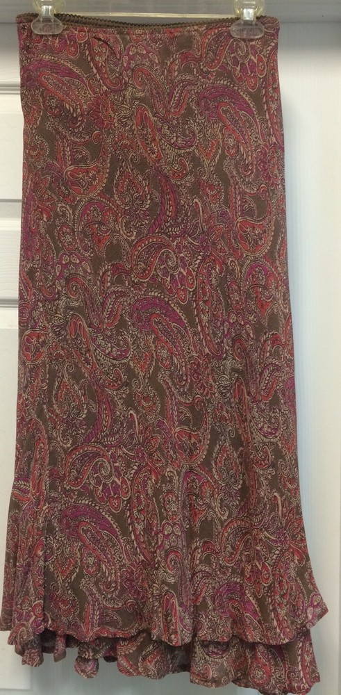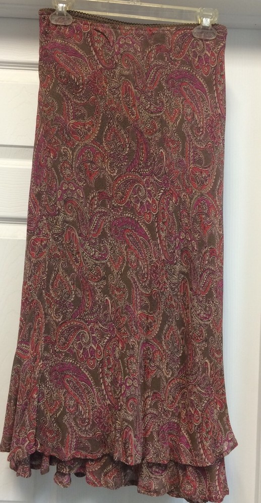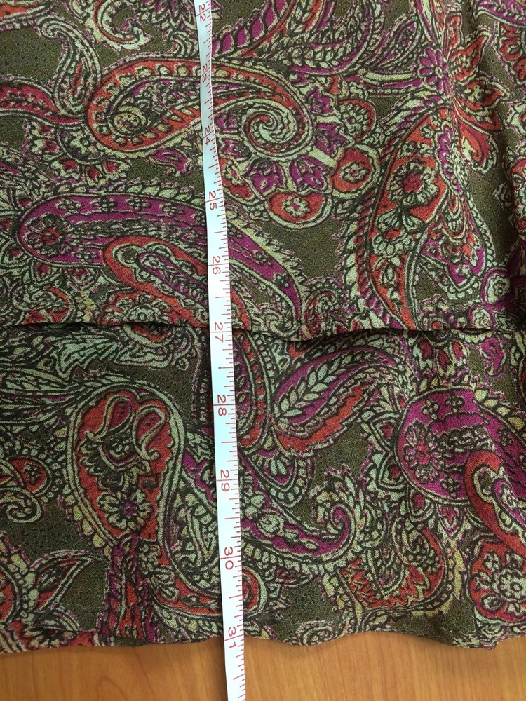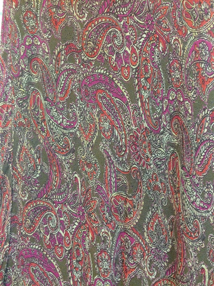 Easy fit silky skirt. Paisley. Longer then mid- calf. Wear it on a hips or however you prefere. Looks great with a boots. Measurements on a pictures. Excellent condition! B3 Final sale! No return!