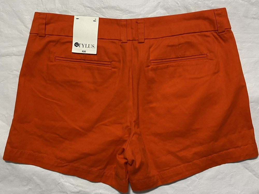 new with tags 100% cotton tag size 4 when measured: waist 32" hips 40" front rise 8.75" back rise 11" inseam 4" leg opening 22"