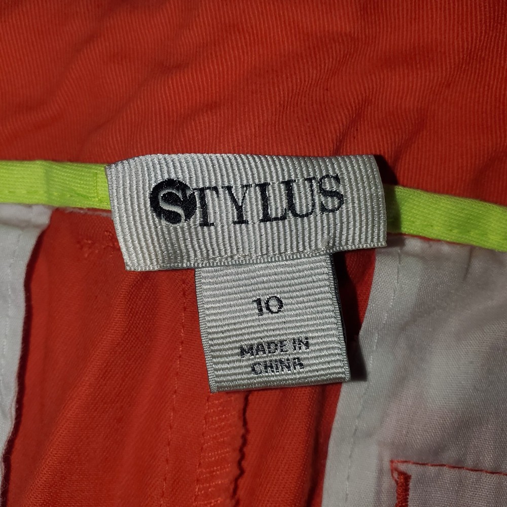 For sale is this Stylus Hot Pants Bright Orange Cotton Woman Shorts Size 10 Measurements: Waist - 17 inches Inseam - 3.5 inches Front Rise - 9.5 inches Back Rise - 14.5 inches These stylish hot pants from Stylus are a must-have for any fashion-forward woman. The bright orange color is perfect for adding a pop of color to your wardrobe, while the cotton material ensures comfort and durability. The mid-rise fit flatters your figure, and the flat front design gives a sleek, modern look. Ideal for any occasion, these shorts have a hook and loop closure for easy wear and are machine washable for easy care. Perfect for summer, fall and spring, and suitable for walking, travel, and party/cocktail events. These shorts are available in size 10 and have a 3.5-inch inseam. Before buying this pair of shorts, please use these dimensions on something you own to compare.