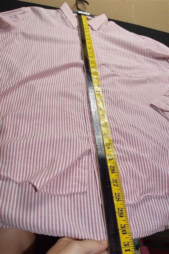 This shirt is a great vintage find! The red and white stripes have a classic, timeless look, and the long sleeves add a nice touch. Despite being labeled "fair," it's in solid condition—no major flaws, just a bit of wear that gives it character. The fit is roomy and comfortable, perfect for layering. If you love retro styles with a relaxed feel, this is a steal!