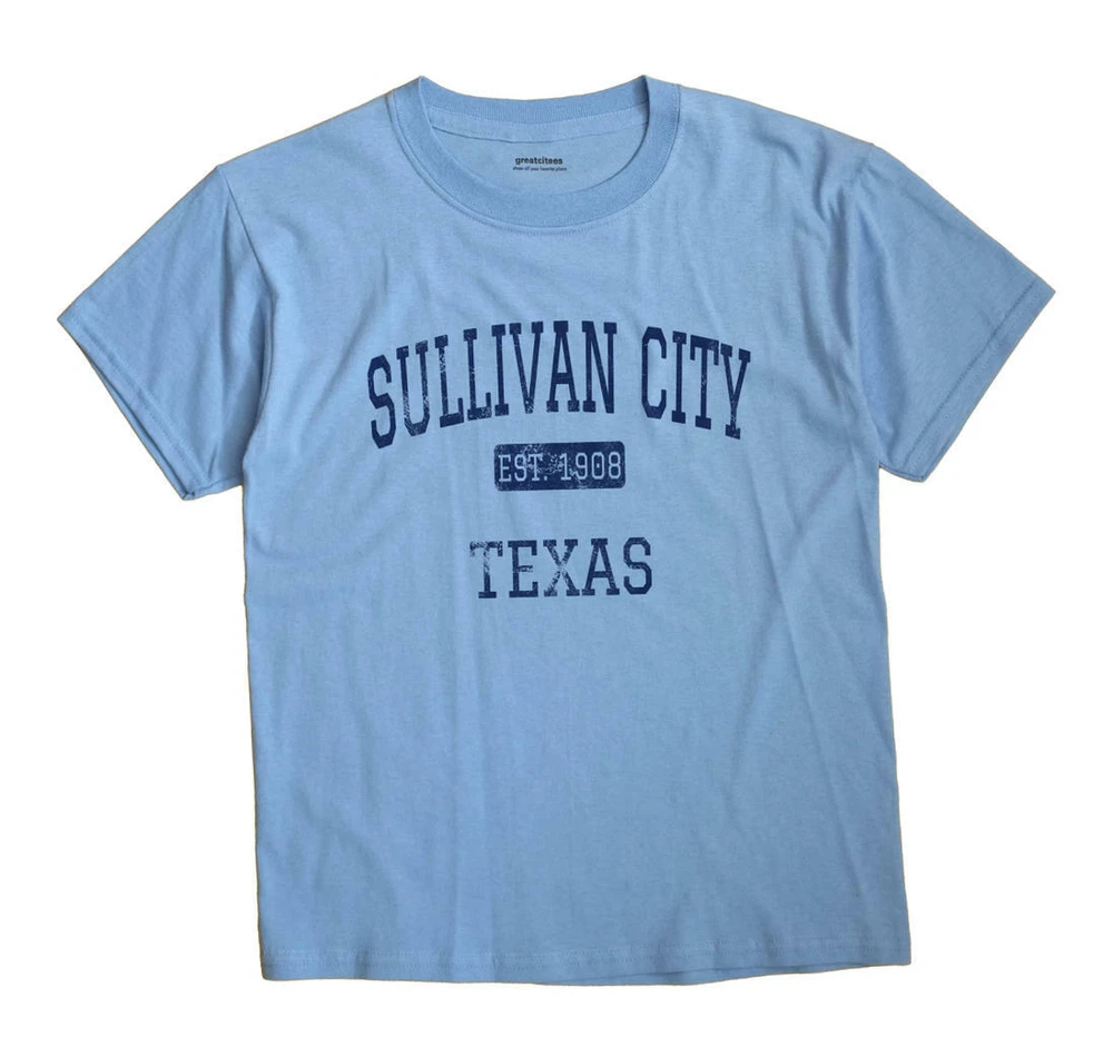 Direct to fabric digital print. NOT a transfer. Ink is embedded in the fabric for ultimate wearable comfort. Unisex t-shirt is 100% cotton (grays 90%), preshrunk Hanes or Anvil* Heavyweight 6 oz. with double needle sleeves and bottom hem. Shipping & Handling Orders are shipped within 4-7 business days after payment. US orders are shipped by USPS First Class Mail. International orders are shipped by USPS First Class Mail International. Show off your love for Sullivan City Texas TX, while looking cool and stylish with this GreatCitees hometown souvenir t-shirt. This casual and loose fitting tee is guaranteed to become your favorite in no time. We use direct-to-garment printing technology, so the ink is embedded in the fabric for your ultimate comfort. Our unisex t-shirts are 100% cotton (grey 90/10), preshrunk heavyweight 5.5 oz. with double needle sleeves and bottom hem. Perfect as a Tex, Hidalgo hometown shirt. *On very rare occasions, we may use a different but comparable brand depending on inventory conditions. Available Colors Similar Shirts Click for more Texas Shirts Click for more Hidalgo Shirts VER20AXIS0V2 IDV20SULLIVAN_CITY_TX_EST00 TAGV20SULLIVAN0CITY0TEXAS0TX TAGV20TEXAS TAGV20SULLIVAN0CITY TAGV20HIDALGO TAGV20 TAGV200