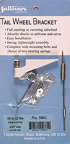 Home About US Our Policies FAQ Contact Us View All Listings Menu CATEGORIES AIRCRAFT / VEHICLE / BOAT KITS Aircraft / Helis Boats (Gas & Electric) Motorcycles Vehicles BATTERIES & CHARGERS Accessories Battery Packs Chargers / Power Supply BEST SELLING ITEMS BOAT PARTS & ACCESSORIES Accessories Boat Parts Engines & Accessories Engine Parts Nitro & Electric Engines Motors & Speed Controls Electric Motors Electronic Speed Controls CLEARANCE ITEMS Flight Simulators & Accessories METAL DETECTOR MODELS & ROCKETS Grease / Lube / Oil RADIO / RECEIVER / SERVOS Accessories Radio Systems Receivers Air Surface Servo Accessories Servos TOOLS & ACCESSORIES WHEELS / TIRES / RIMS Accessories Wheels / Rims / Tires / Sets RC Cars & Trucks CAR & TRUCK ACCESSORIES Accessories (Stands, Shocks, etc) Bodies / Lights / Accessories Electric Motors/Speed Control Accessories Electric Motors / Speed Controls Engines & Accessories Accessories (Glow Plugs, Temp Guns, etc..) Nitro Engines Nitro Engine Parts (Tune Pipes, gaskets, etc..) Transmissions / Gears PARTS BY VEHICLE Axial Vehicle Parts Gmade Vehicle Parts HPI Vehicle Parts Kyosho Vehicle Parts Losi Vehicle Parts RDLogics Parts Thunder Tiger Vehicle Parts Traxxas Vehicle Parts Vaterra Vehicle Parts Venom / Atomik Parts Misc. Parts RC Helicopters HELICOPTER ACCESSORIES Accessories Heli Engines & Accessories Engine Parts Engines Tuned Pipes / Mufflers Motors & Speed Controls Motors Speed Controls PARTS BY HELI Align Heli Parts Blade Heli Parts DJI Quadcopter Parts Gaui Heli Parts Extreme-Flyers Heli Parts Heli-Max Heli Parts Nine Eagle Solo Pro Traxxas Heli Parts Esky Heli Parts SAB (Goblin) Parts Heli Accessories Slot Cars SLOT CARS & SETS Accessories Slot Car Sets Slot Cars Trains TRAINS & ACCESSORIES Adhesives / Fluids / Tools Buildings / Bridges / Tunnels Figures / TrackSide Accessories Grasses / Trees / Scenery Parts / Accessories Power Supplies / Transformers Trains / Tracks / Sets Paint & Accessories PAINT & ACCESSORIES Accessories / Tape / Brushes AirBrush Accessories AirBrush Sets / Compressors Paint Paint - Aerosol / Spray Cans Paint - Airbrush / Bottles Paint - Markers Paint Masks & Decals This is a NEW Genuine Sullivan S861 Tailwheel Bracket 60-1/4 10-22 lbs Airplanes Product Specifications Brand Part # S861 Stock Status Retail Price 0.00 Need Faster Shipping? Condition Brand New In Factory Packaging Warranty Full Manufacturer Warranty Enlarge In-Stock, Ships Within 24 Hrs. Authorized Dealer ITEM DESCRIPTION Features: Solid plastic bracket mount. 3/32" diameter spring steel axle 2 steering springs (1 heavy, 1 light) for desired steering input All necessary hardware is included Includes: 1- complete tailwheel assembly 2- 4-40 x 1" bolts, 4-40 blind nuts and washers. 2- Return springs. This is a complete tailwheel bracket for airplanes. This attaches to the bottom of the airplane and the bottom of the rudder so you dont have to worry about drilling holes in the rudder. 60size to 1/4 scale planes Payment We Require Payment via PayPal Within 7 Days RETURN POLICY 30 Day Return Policy on Brand New / Un-Opened Items Only (Full Refund minus Shipping & Handling) We are an authorized dealer of every product we offer in our store. All warranties stated or implied are through the manufacturer. SHIPPING FEEDBACK Feedback is important to all of us participating in the eBay community. We will leave you a positive feedback as soon as we receive feedback from you. Leaving a negative feedback will not help us resolve any issues or concerns you may have. So please make sure to contact us before leaving a negative feedback. There are always ways to work things out to meet your satisfaction. Thank you. Top 10 Reasons to Shop At GoNitroHobbies Authenticity Guaranteed We are authorized dealers of all the items we sell and all products are brand new in factory packaging All items are in-stock 99% of our items listed are in-stock which means you'll recieve your purchase faster. We've been around We have been serving R/C hobby enthusiasts worldwide for over 9 years. Great customer service We aim to offer all of our customers with the best service to ensure their satisfaction is met. Please email us thru ebaywith any questions or concerns you may have. Great savings We strive to ensure our customers as much savings as possible by offering low prices and low shipping rates. All orders ship in 24 hours Not only do we offer worldwide shipping, but all of our orders are shipped the same day or the following business day. Amazing customer reviews With thousands of satisfied customers around the world, check out our feedback and you'll see why customers prefer to shop with us. Wide selection We offer a wide selection of products and carry a ton of brands to ensure our customers find what they're looking for. Safe and secure packaging We insure that all orders are packed properly and delivered to your doorstop safely. Secure, easy ordering Orders can be placed online using PayPal to ensure a safe andsecure transaction and guarantee your privacy. Home About Us Contact Us FAQs Policies Copyright © 2017 GoNitroHobbies - All rights reserved